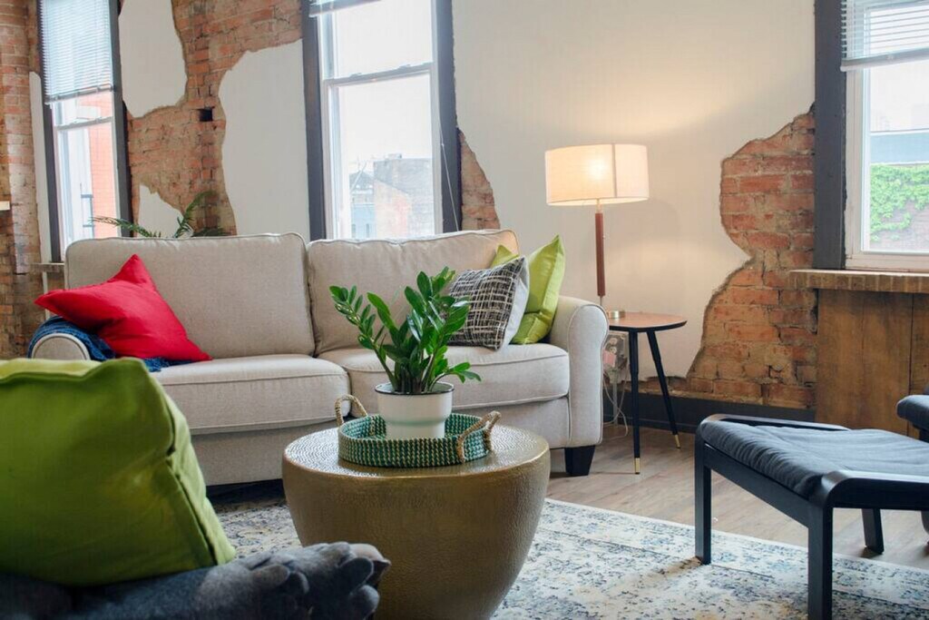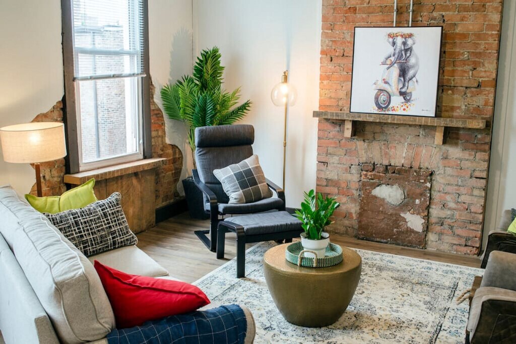 This top-floor condo is located just two blocks from Washington Park and within walking distance to Over the Rhine's best restaurants, bars, breweries, and Findlay Market. The 1870s building has been completely renovated, maintaining historic features like original wall pieces and a fireplace, offering a unique blend of old and new design elements. The condo requires stairs as there is no elevator in the building. The condo is designed for socializing, featuring a large open living area and a kitchen with marble countertop bars that can comfortably seat a family. The kitchen serves as a perfect launching point for a night out and a great place to debrief with friends or family at the end of the night. The living room offers plenty of comfortable seating with a midcentury theme, and the bedrooms on the second floor provide privacy and a space to recharge, each featuring a plush Tuft and Needle mattress. The master bathroom is spacious, with designer fixtures and a skylight for natural light. All toiletries and normal amenities are provided. You'll have free parking for 2 vehicles with our parking pass. Conveniently located, you can walk to Cincinnati's major sports, theater, concert venues, convention center, museums, boutique shopping, bars, and restaurants. Breweries, distilleries, and wine producers like Rhinegiest, Taft's, Christian Moerlein, Three Points, Sam Adams, Northern Row, Skeleton Root, Northside, and Revel are all walkable, with most being just 1-4 blocks away. Findlay Market is also just blocks away. Parties and amplified music are strictly forbidden without advance written consent. Unauthorized parties are considered criminal trespassing under Ohio Revised Code and Cincinnati municipal code. Quiet hours are from 9:30pm-8am, and any disturbance may lead to reservation termination without refund. Smoking or lighting anything indoors is prohibited and may result in a $300 cleaning fee. Additional fees may apply for excessive pet hair, stains, unreturned keys, deep cleaning, and security costs. The condo requires stairs as there is no elevator in the building. [SI]