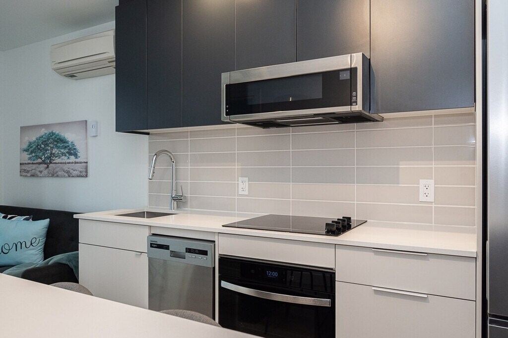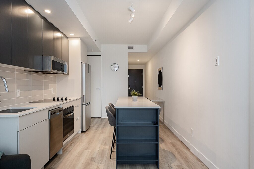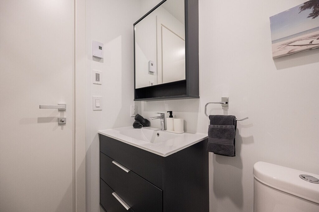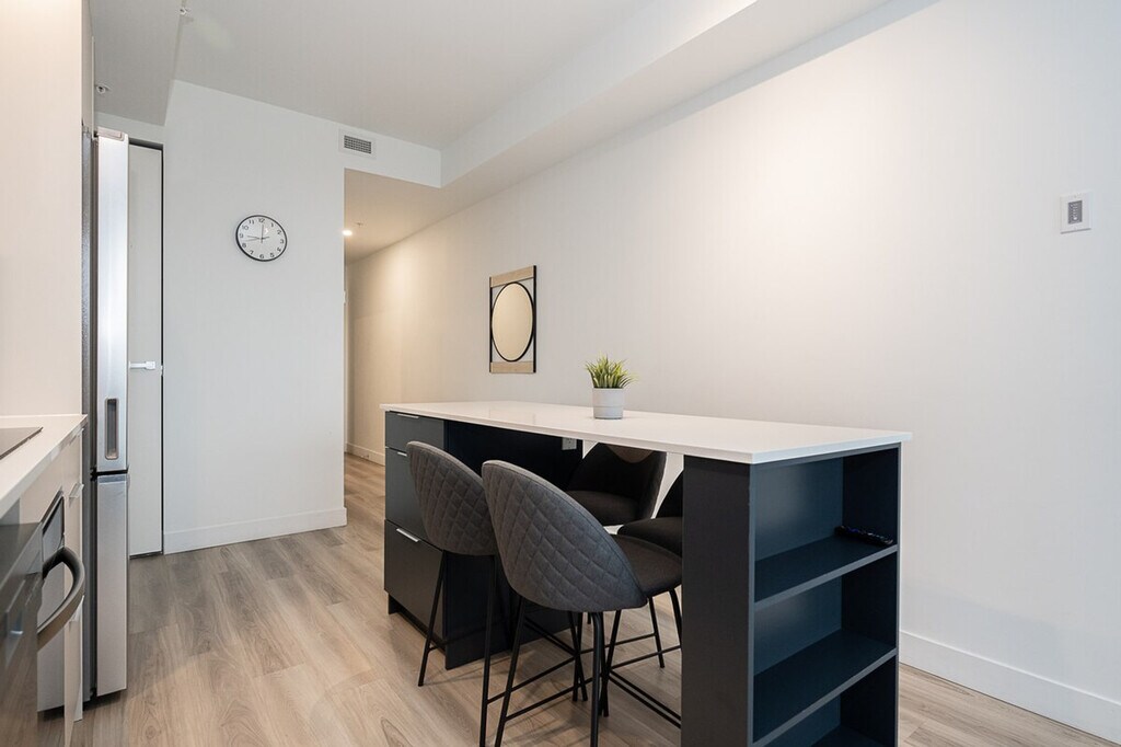 Located in the bustling downtown core of Montreal, adjacent to the Bell Centre, this property epitomizes luxury and practicality, setting a new benchmark for urban living, especially tailored for young professionals, newcomers, and students. Situated mere steps away, residents enjoy easy access to the attractions of the Golden Square Mile and the historic charm of Old Montreal. This development fosters an environment ideal for both academic pursuits and professional development. This new condo is very well located near the Bell Centre, just steps away residents have access to the Golden Square Mile’s attractions. It features 1 bedroom with a queen bed and 1 bathroom. Indoor parking with in/out privileges is available for an additional fee, depending on your length of stay. We offer a variety of cleaning services that include bi-weekly or monthly options, available for an extra charge. Residents enjoy easy access to the attractions of the Golden Square Mile and the historic charm of Old Montreal, making it an ideal location for both academic pursuits and professional development. No parties of any kind or loud noises that can alter the harmony of residents are allowed. No smoking of cannabis, cigarettes, or any kind inside the apartment, balcony, or the building. Care for your home away from home. The apartment offers shared workspaces, a conference room, and a workspace with a view, making it ideal for remote work. [SI]