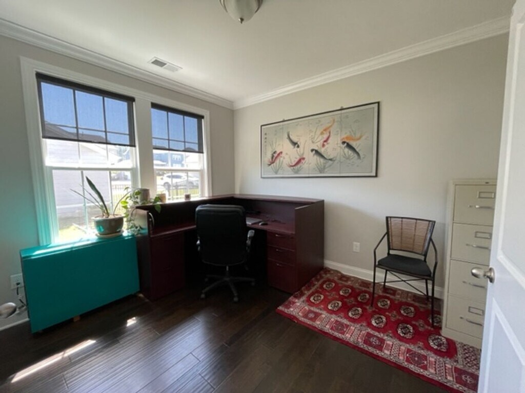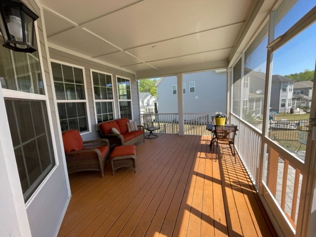 This floorplan will meet all of your needs with added features. Large open foyer, first-floor guest suite, study, formal dining & butler's pantry, gourmet kitchen with cooktop &wall oven, walk-in pantry & quartz countertop. Large family room with lots of windows for natural light. Kitchen w/large center island. Screened porch for relaxing outside along with an extended patio. Back alley dethatched garage. Fenced yard with raised planter beds. Short distance to pool, playground, clubhouse, dog park, and picnic pavilions.