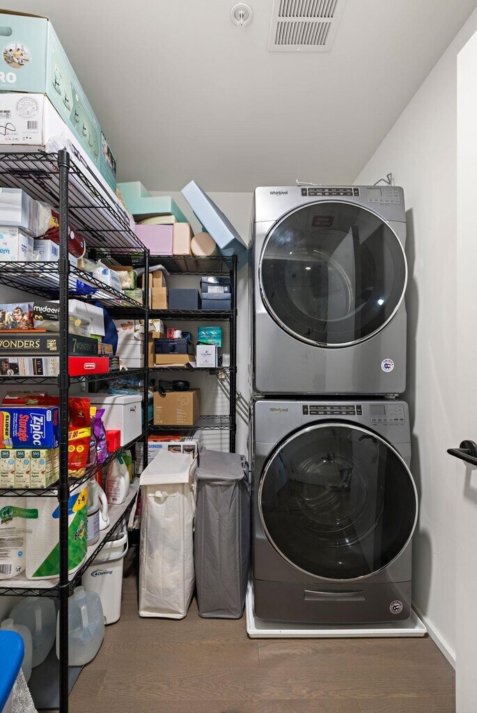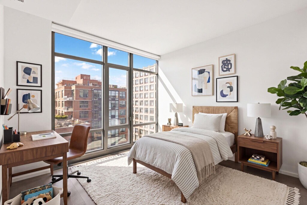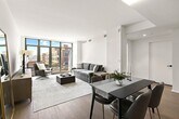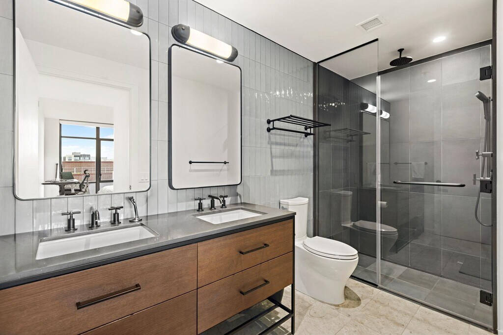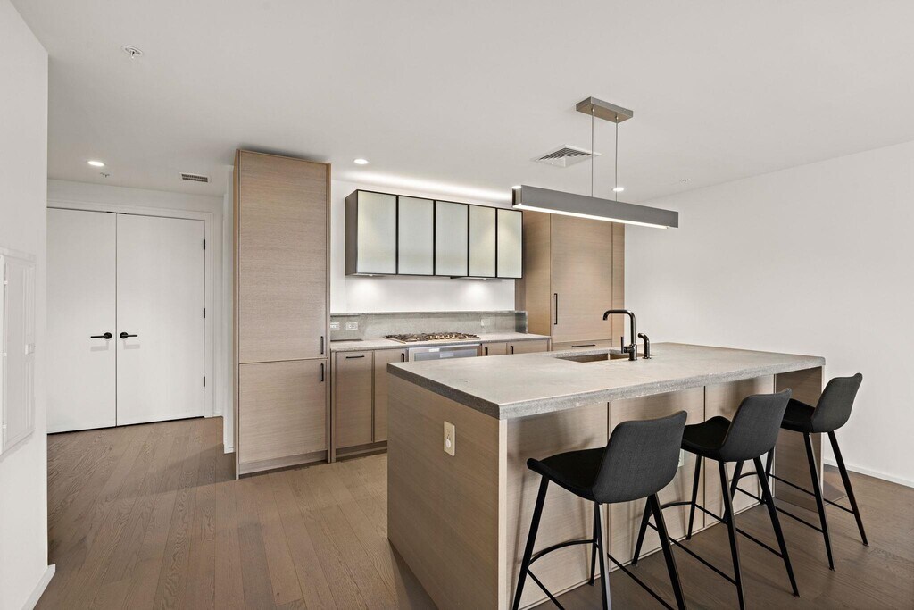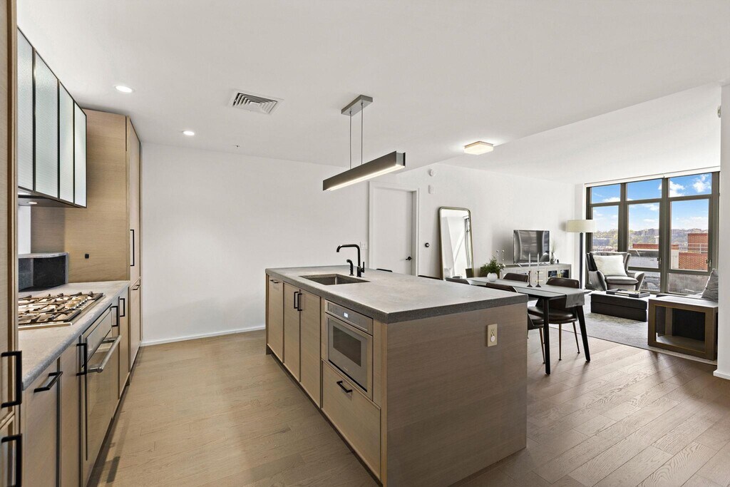 Resort living in Uptown Hoboken's newest waterfront luxury community. Residence 11B at 1425 Hudson St. is a spacious 1291 sq. ft. 2 bedroom 2 bathroom perched on the 11th floor featuring amazing sunsets, light and blue skied vistas. Rarely available, this exceptional home offers floor-to-ceiling windows, a contemporary open floor plan, lofty ceilings, wide plank hardwood floors and a true laundry room with amazing storage. The designer kitchen has a Thermador appliance suite, garbage disposal, quartz counters and a large island. The primary suite offers a huge walk-in-closet, double sink, quartz heated floor & separate shower. Other perks include a Nest thermostat and Hunter Douglas window treatments w/remote control. Five-star amenities include elevators, a hotelesque 24-hour attended lobby, fitness center, children's playroom, and a swanky rooftop overlooking the Manhattan skyline with a plunge pool, fireplace, barbecue grills, and TV lounge area. Easy access to the city with a delightful ferry ride a stone's throw away, shuttle to the PATH and buses to NYC just around the corner. Parking is available for a fee at the LAZ garage (15th and Bloomfield Sts.). Avail. June1 2026 (Some phots have been edited)