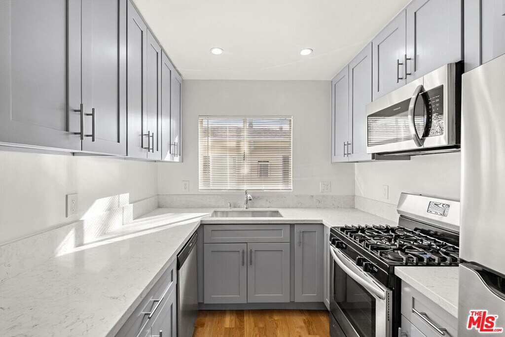 Large remodeled one bedroom / one bathroom unit with hardwood floors, ample closet space, chef's kitchen, stainless steel appliances, marble bathroom with walk-in shower, recessed dimmable lighting, ductless air conditioning and a balcony. One dedicated parking space. Shared laundry in building. Situated south of Sunset Blvd - south of Sunset Blvd. within close proximity to renowned dining, fashion, design, cafes, entertainment and much more. MLS# 25622329