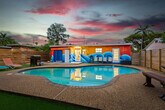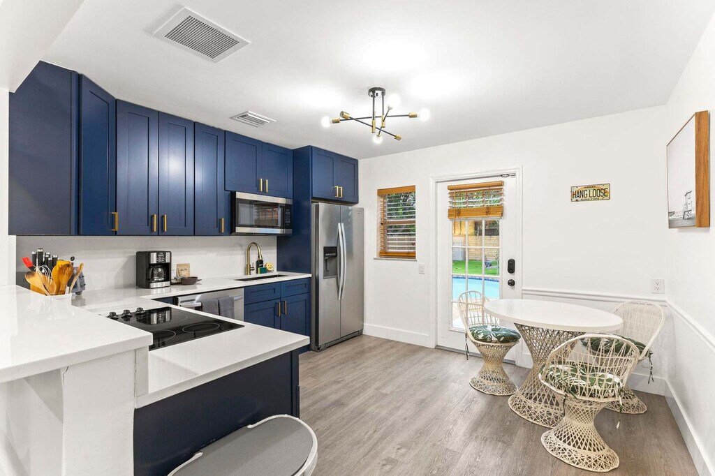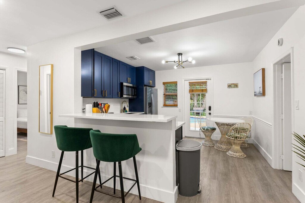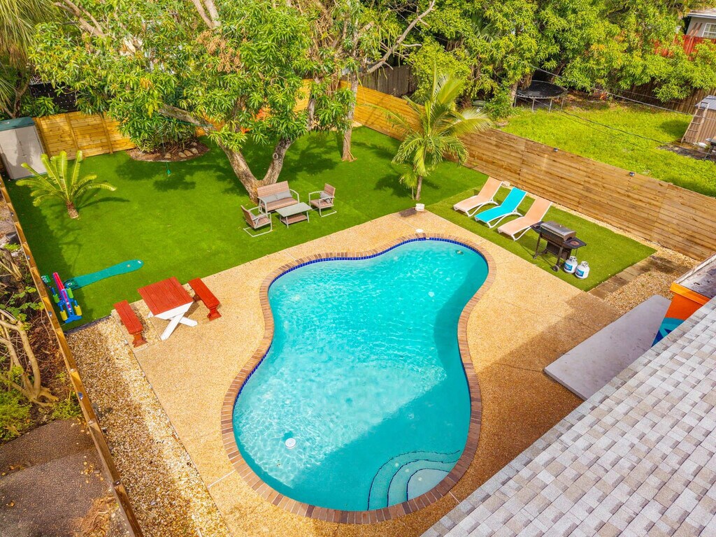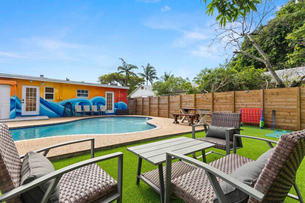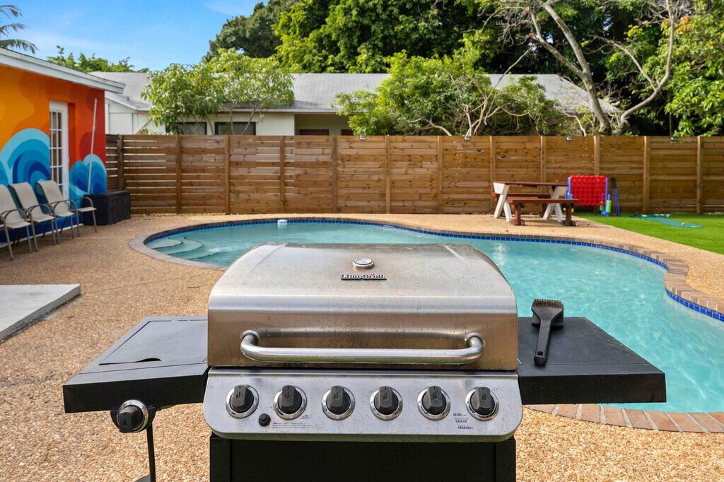 Welcome to your stylish Fort Lauderdale retreat! Feel at home in this 3-bedroom, 2-bathroom home that comfortably accommodates up to 8 guests. Inside, this home offers a bright, open layout, comfortable bedrooms, and all the modern amenities you need for a relaxing stay. The chef’s kitchen is fully stocked with high-end stainless appliances, a large refrigerator, and a drip coffee maker. The living room features a smart TV and plush seating. Enjoy the private backyard oasis with a private pool, outdoor patio/dining area, BBQ grill, mini golf, giant Connect 4, and poolside loungers. Includes a washer and dryer. Parking is available for up to 2 cars. Located in the heart of Fort Lauderdale, you’ll be just minutes from sandy beaches, vibrant nightlife, world-class dining, and boutique shopping. Nearby attractions include Fort Lauderdale Beach, Las Olas Boulevard & Riverwalk, Hugh Taylor Birch State Park, Broward Center for the Performing Arts, and Flamingo Gardens. The Foxy Brown, Coconuts, La Fuga, and YOLO are among the many nearby restaurants. Check-in is at 4pm and check-out is at 10am. No pets are allowed. No parties are allowed—violations may result in immediate termination of the stay. Guests must be 21 years or older to book this property. [SI]