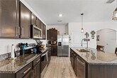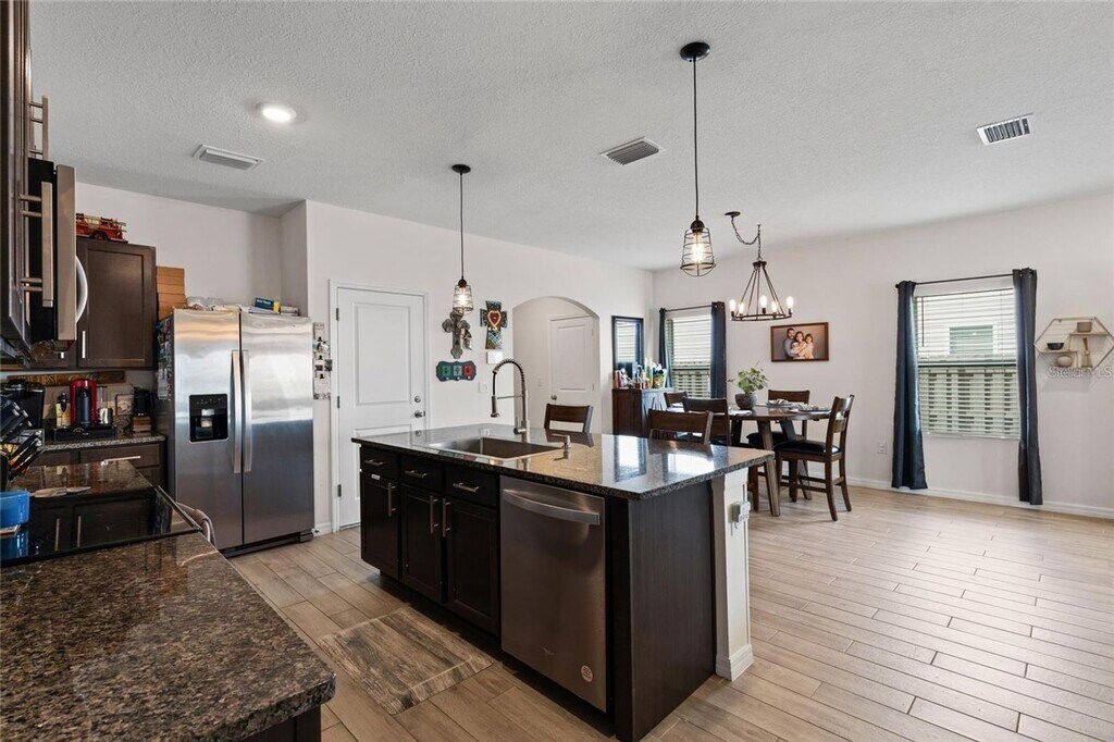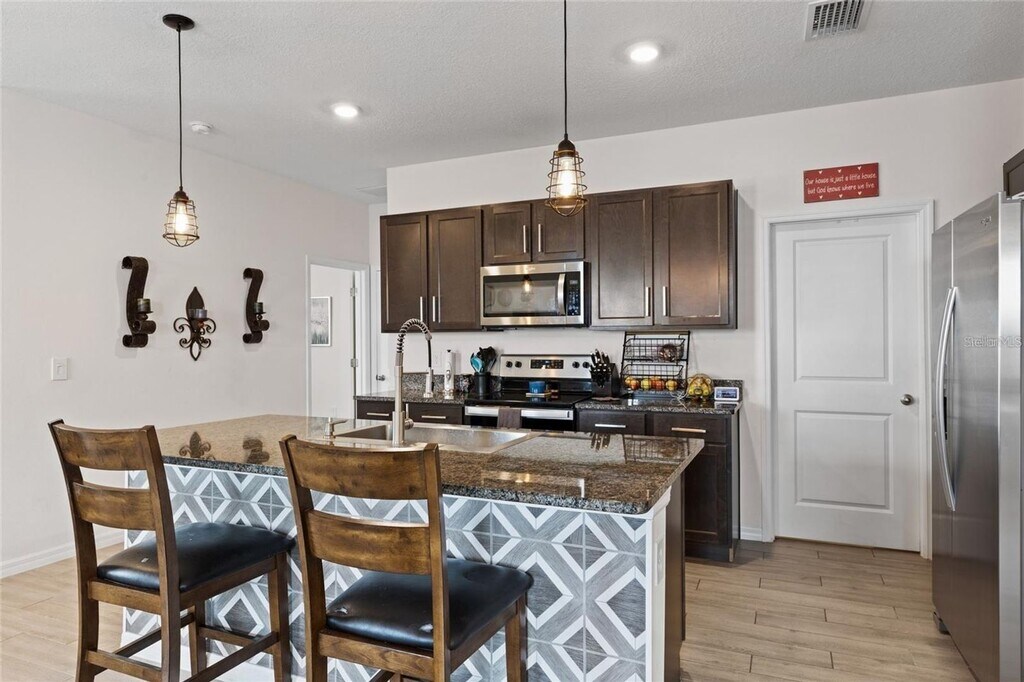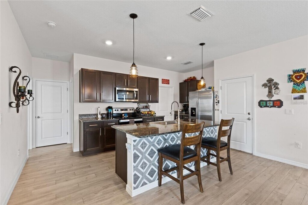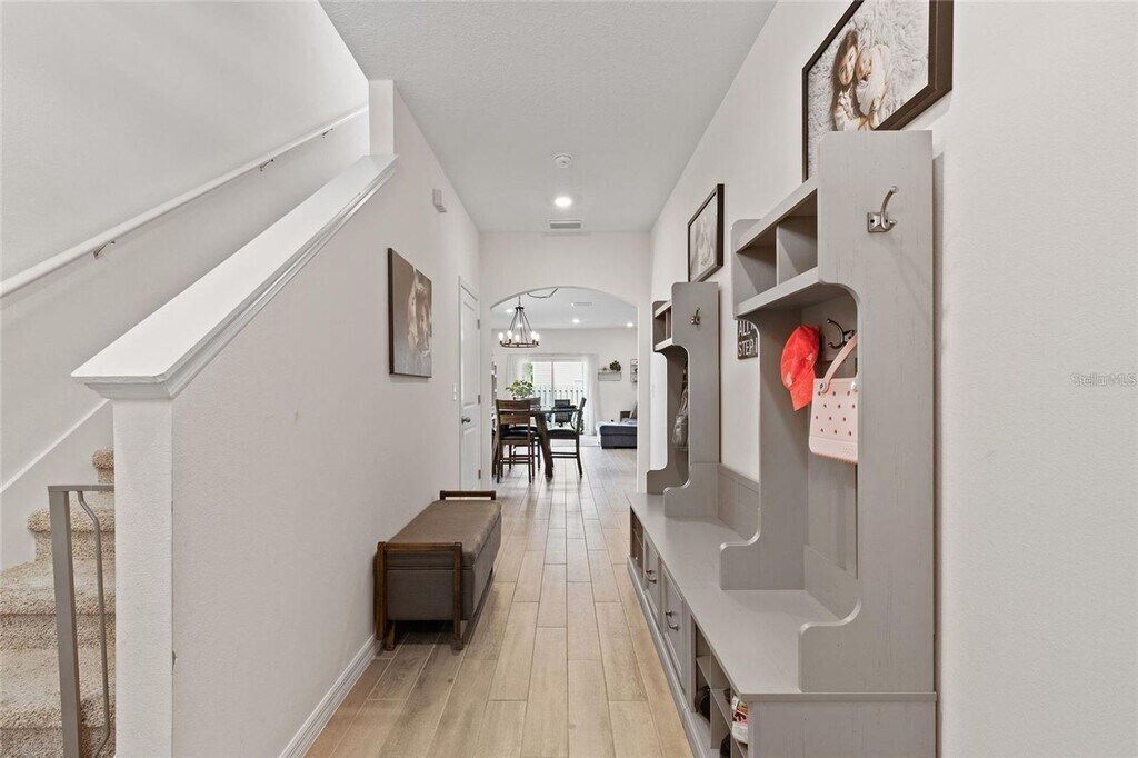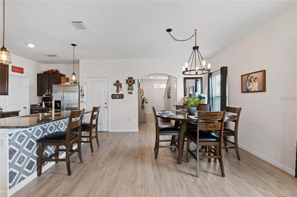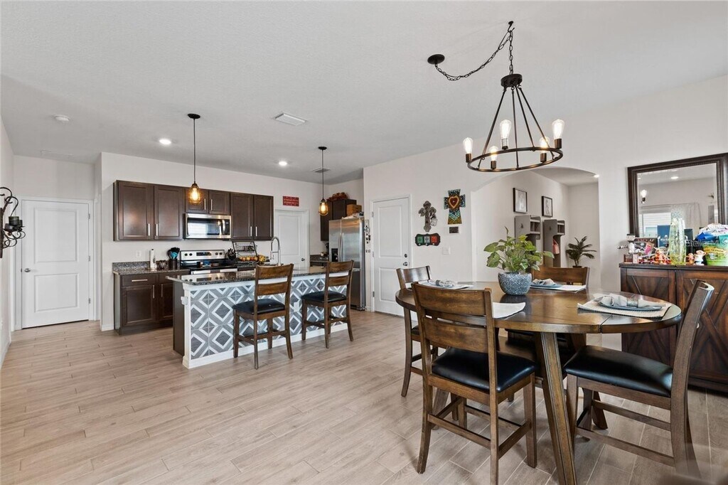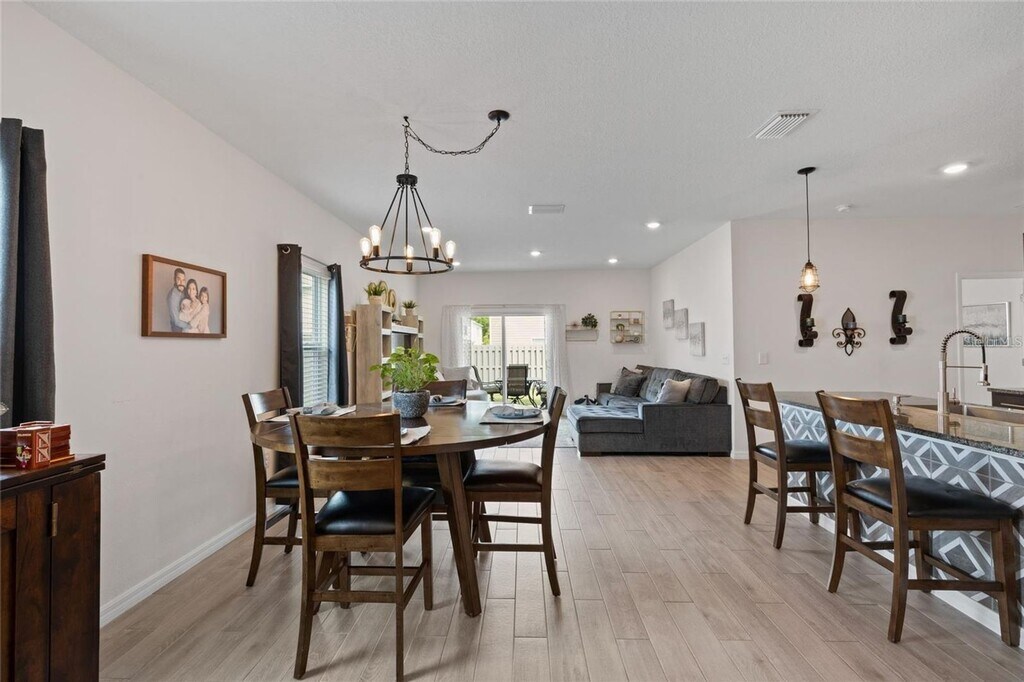 Step into this almost new home nestled within the Arbor Greens community at the heart of Jonesville. Boasting five bedrooms and three bathrooms, this spacious home is primed for immediate occupancy, seamlessly blending contemporary elegance with the tranquility of suburban living. As you enter, be greeted by an expansive interior adorned with low-maintenance wood-look tile floors, crafting an inviting atmosphere throughout. The kitchen features granite countertops, stainless steel appliances, a farmhouse sink, breakfast bar, coffee bar and a generously sized pantry for all your storage needs. Designed with entertainment in mind, the open-concept layout effortlessly connects the kitchen, dining, and living areas, forming a dynamic space for gatherings and relaxation. The owners have tastefully upgraded fixtures, added shelving, installed a paver driveway & gutters, and other finishing touches, setting this home apart from new construction. Retreat to the primary suite, complete with a spacious ensuite bathroom and a walk-in closet, offering a private sanctuary for unwinding. With one bedroom and bath downstairs and four bedrooms and two bathrooms upstairs, this layout offers convenience and privacy. Upstairs, a roomy laundry area with included washer and dryer, along with extra shelves and storage, adds to the home's functionality. Upstairs is also home to some extra space perfect for a play area or study nook. A sliding glass door leads to the covered patio, extending the living space outdoors. The fully fenced yard invites endless outdoor enjoyment, whether it's hosting barbecues, gardening, or simply soaking in the Florida sunshine. Conveniently situated near Gainesville, residents will appreciate easy access to top-rated schools, Tioga Town Center, dining options, parks, and more. Plus, residents can take advantage of community amenities such as the pool, clubhouse, CLAY ELECTRIC, and front yard maintenance provided by the association. Don't miss out on the opportunity to embrace quintessential Florida living at 1425 NW 136th Drive. Schedule your private tour today and discover your new dream home!