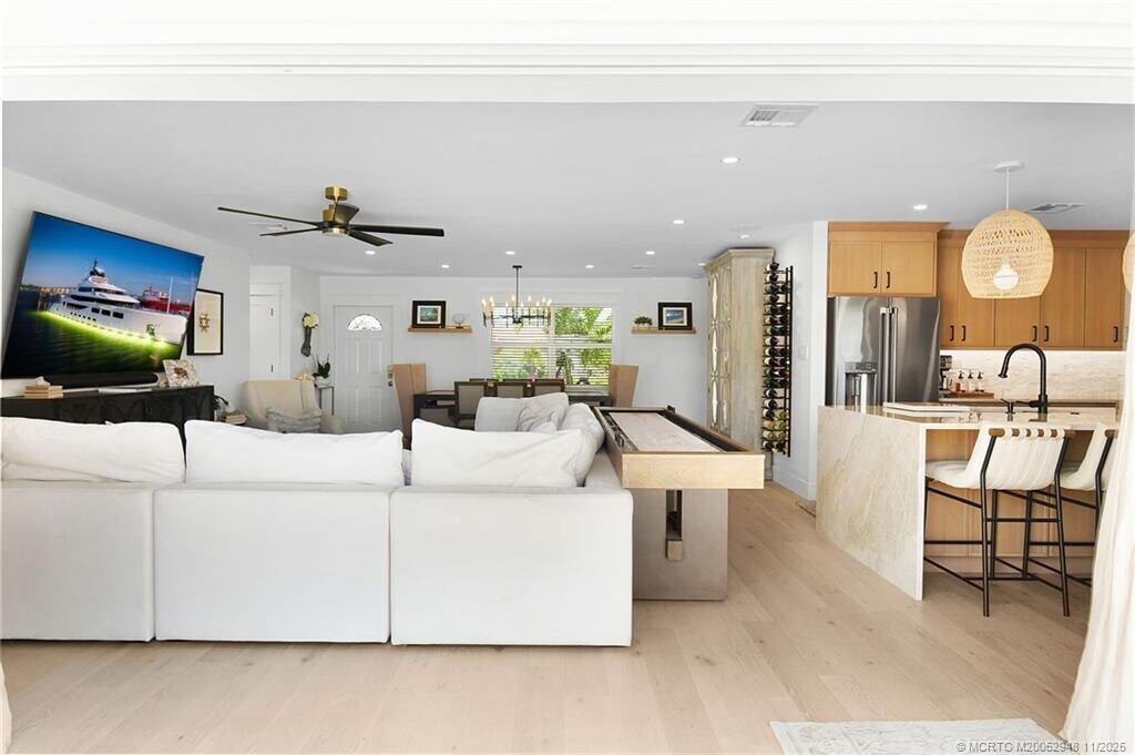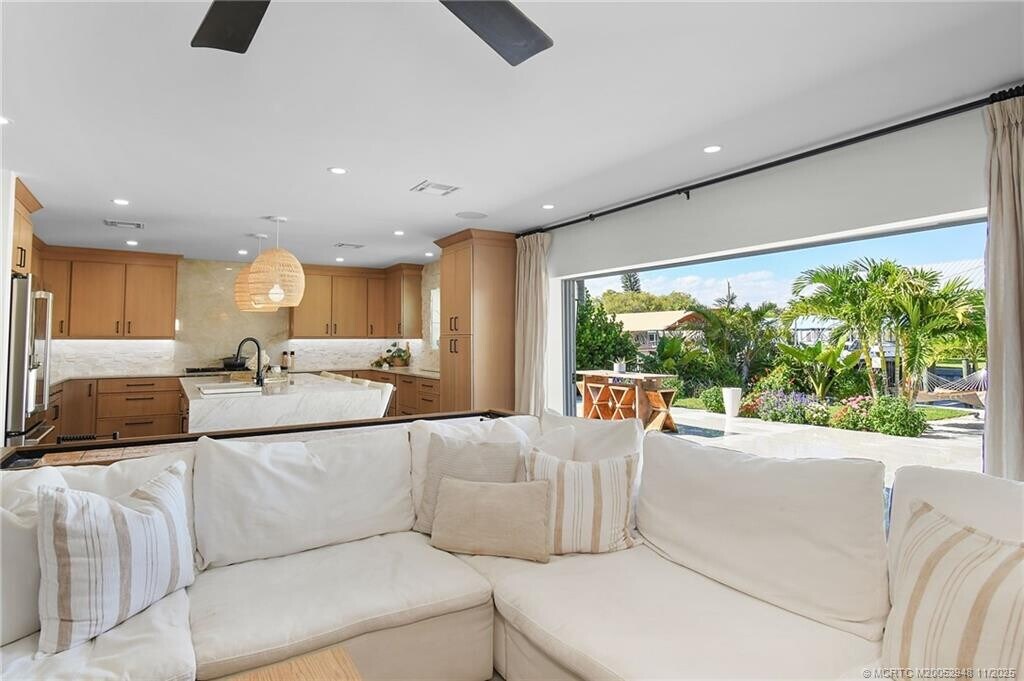 Tropi?al W?t?rfront ?sca?? w?th Dock! Welcome to ?our tr?pical escape! This beautifully remodeled 3-bedrm,2-bath waterfront home offers the perfect mix of luxury,comfort,& fun in the sun. Located on a quiet canal with direct ocean access,you can bring your boat or simply enjoy the view from the beautiful back yard. Inside,you’ll find an impeccably designed chef’s kitchen featuring an 8-burner gas range,a spacious center island,and premium finishes throughout—ideal for both casual meals & entertaining. The open-concept living area is beautifully furnished,with natural light pouring in & tranquil water views. Outside is where you’ll fall in love: unwind in the hammocks,read your favorite book in the shaded lounging area,or gather around one of the two fire pits for sunset cocktails. Whether you’re boating,barbecuing,or simply relaxing by the water,this home has everything for an unforgettable stay-all just minutes away from the pristine beaches of Hutchinson Island. MLS# M20052948