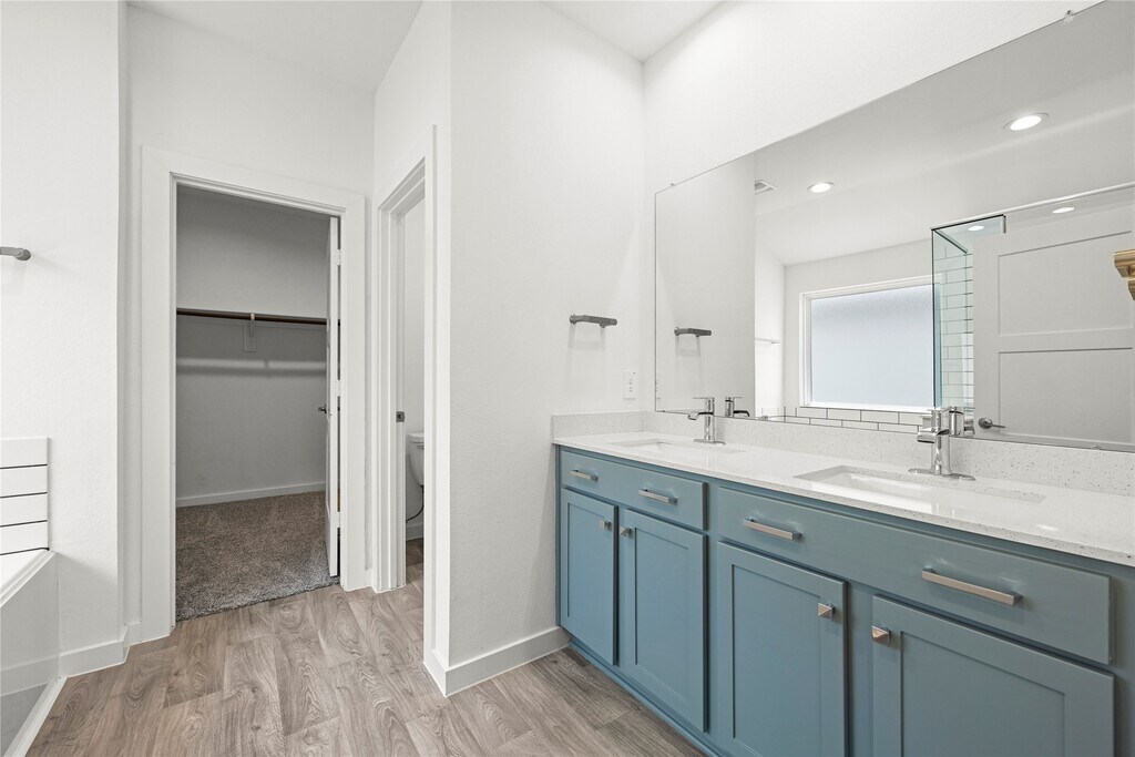 This stunning 3-bedroom,2-bathroom,2-car garage home is located in the charming community of Fosters Ridge. Enjoy solid surface flooring throughout the living areas and an open kitchen featuring stainless steel appliances,a gas burner cooktop,quartz counters,and 36" cabinets. The split floorplan places the primary bedroom at the rear of the home,complete with an ensuite featuring a walk-in shower,separate soaker tub,double sinks,and a large walk-in closet. The home also includes a refrigerator,washer,and dryer. Outside,you'll find an extended covered patio and a full sprinkler system,perfect for entertaining. With tons of natural light and no rear neighbors,this home offers both privacy and tranquility. Fosters Ridge amenities include a beautiful community center,playground,and pool. Zoned to The Woodlands Schools (CISD),this home is ready for you to move in and make it your own! MLS# 16668018