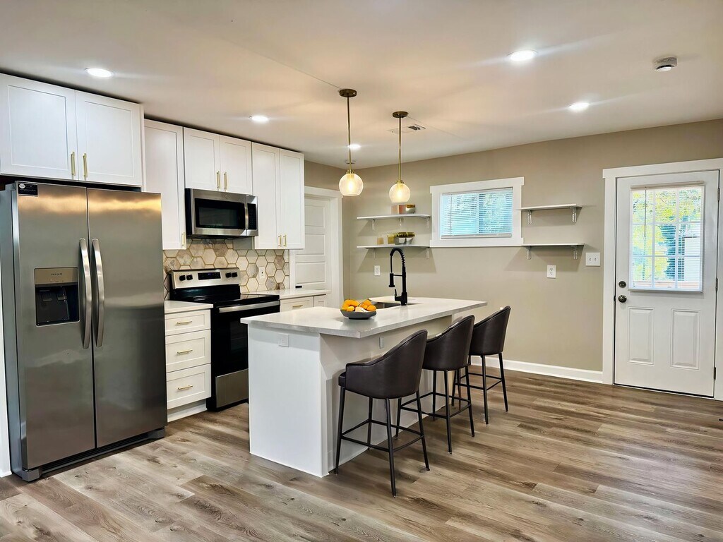Welcome to 1426 Bluefield Drive! This is a beautifully renovated 3-bedroom, 2-bath home with an open-concept layout featuring a white spacious kitchen island with farmhouse sink, quartz countertops, stylish backsplash, white soft-close cabinets and stainless steel appliances. The home is finished with LVP flooring throughout. The primary suite includes spa-like en-suite bath with a tiled shower, glass enclosure, and designer finishes. Two additional bedrooms share a beautifully updated hall bath with custom tile details. Enjoy outdoor living with a private fenced backyard and patio deck, perfect for entertaining or relaxing after a long day. Located on a quiet street just minutes from shopping, parks, restaurants, and all that the West End has to offer....This Oakland City Gem is walking distance to Lee and White breweries and restaurants! * This property is eligible for deposit alternative in lieu of a security deposit. Eligibility requirements apply. For details and enrollment, please contact our leasing team and enjoy a deposit-free renting experience! 3 Options Realty residents are enrolled in a Resident Benefits Package (RBP) for $35.00/month which includes, on demand pest control, ID theft protection, utility concierge, HVAC filters, credit reporting, early move in, late move out, waived 1st late fee, waived 1st NSF fee, waived renewal fee, security deposit alternatives, online portal for rent payments and maintenance requests, remote pay (pay rent at local retail stores), buyer rebate (when you are ready to buy a house), and discounts for 1000’s of businesses. For details, please contact our leasing team.