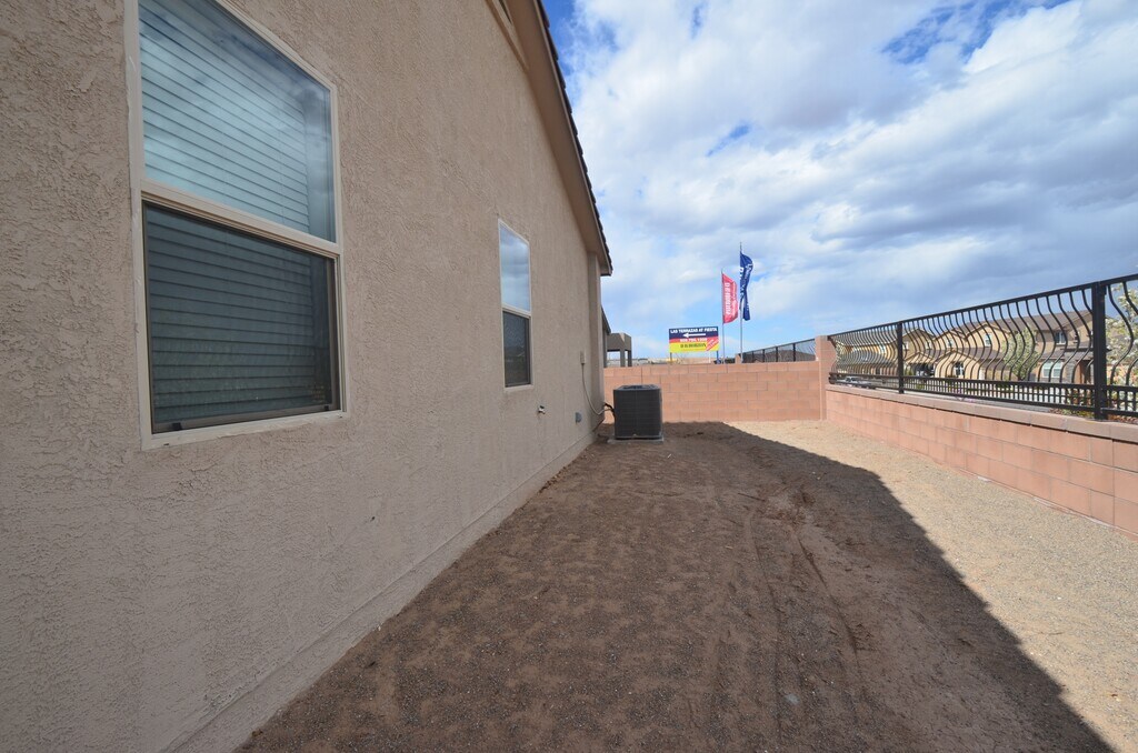 Lovely DR Horton 4 bdrm. 2 bath 2 car garage 1690 sq. ft. home in Los Lunas. Spacious open floor plan- 9 foot ceiling, ceramic tile in all wet areas including family room. Granite kitchen countertops with an island, backsplash, and crown moulding above cabinets. Washer dryer included. Refrigerated air, walk-in closets. Kitchen island, all appliances included. Covered patio, walled backyard. Xeriscaped yard. Requirements are >650 credit score and 3X rent to income ratio. 1 small dog allowed. We do not offer property tours without prior pre-qualification through a completed free application.