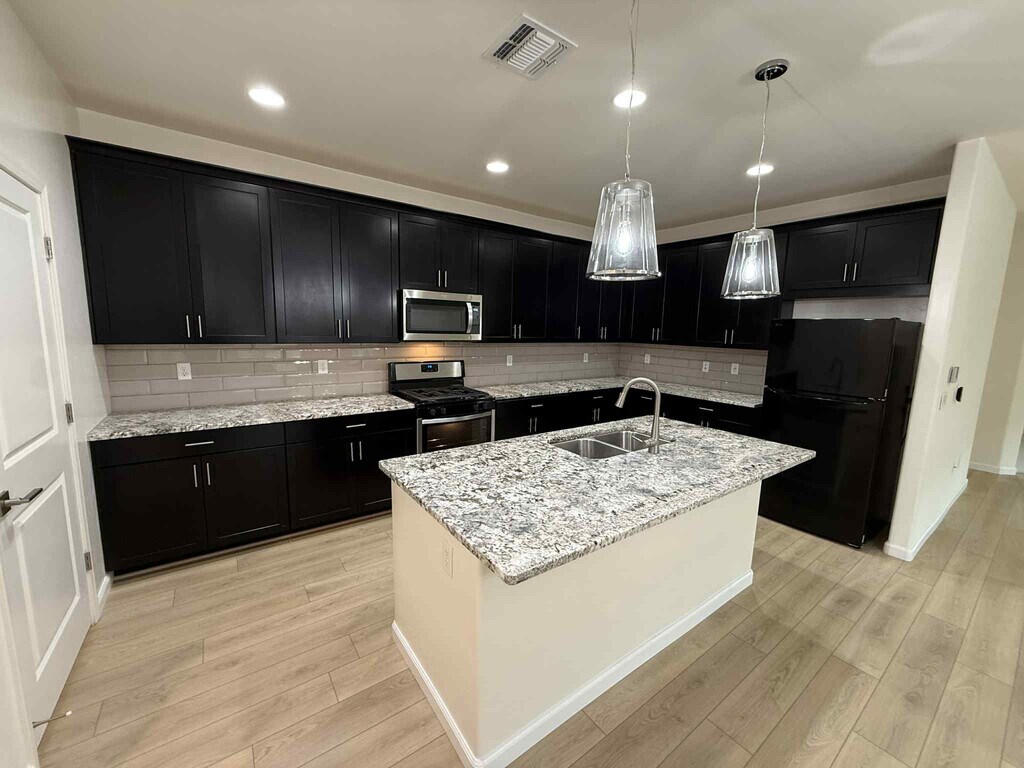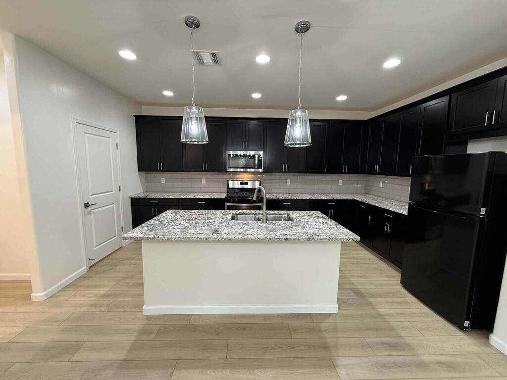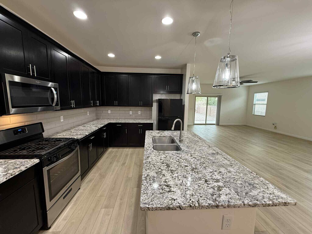 Welcome to this beautiful and spacious 3 bedroom, 3 bath home located in the desirable Rancho Del Lago community in Vail. Offering 2,694 square feet of living space, this home features oversized bedrooms, three full bathrooms, and thoughtful upgrades throughout. Enjoy the benefits of a reverse osmosis system, a whole-home water softener, solar panels for energy efficiency, and a built-in stone fire pit in the backyard—perfect for evening gatherings. The kitchen includes a large island, pantry, and modern appliances, while the primary suite boasts a walk-in closet and double sink vanity. Additional amenities include a fenced yard, private patio, garage parking, and full-size washer and dryer. Nestled in this neighborhood that is just a short walk to the Rancho Del Lago golf course, this home is also located in the top-rated Vail School District. Call to schedule your tour today. Tenant is responsible for utilities (water, waste, sewage, gas, electricity, internet, etc.). Tenant is responsible for salt/potassium rocks for included water softener refills. Tenant is responsible for filter changes on included reverse osmosis system if tenant decides to utilize. Pets are allowed, small dogs up to 25lbs, $25 pet rent per pet. No smoking allowed on premises.