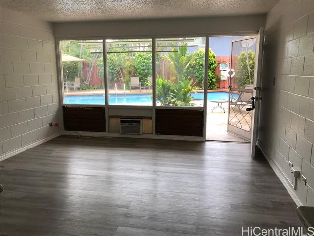 Rarely available Alexander Gardens-1 bedroom, 1 bath, 1 parking space (opened & assigned). Secured gated building and well-maintained community laundry in the building. Property has been completely renovated with vinyl laminate flooring throughout, freshly painted, new kitchen and bath. This charming property reminds me of show Melrose Place" with its private and friendly atmosphere. Property has a great pool w/nice relaxing seating area to enjoy. Excellent location near to University of Hawaii, shopping, entertainment, public transportation, and much more. Easy access to H1 going east and west. Vacant, clean and ready for new resident."