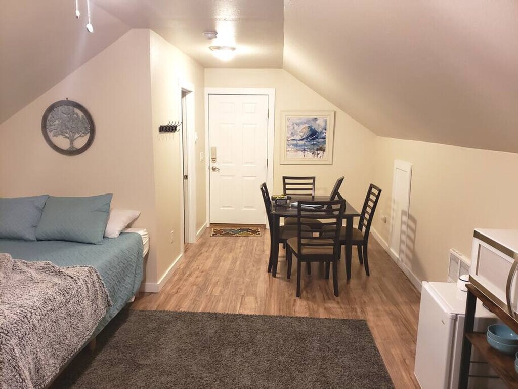 Feel at home in this recently remodeled private in-law suite just blocks from downtown, the foothills, and Table Rock park. This 1-bedroom suite is literally one block from an entrance to Boise's beautiful foothills. Enjoy a comfortable stay in this suite that includes a queen bed, sleeper sofa, private bathroom, TV, guest Wi-Fi, fridge, microwave, and coffee maker. A private recently remodeled shower includes a shower and private water-heater. Kid-friendly amenities are available upon request, including a pack 'n' play and high chair. The home is located off of Warm Springs Boulevard in Boise's historic East End, one of the oldest and most desirable neighborhoods in Boise. Just 1.5 miles from Downtown Boise, and nestled right up behind the Foothills, you are close to both outdoor fun while still close enough to hit the town. The downtown area offers a smorgasbord of shopping, restaurants, activities and nightlife. The Boise Airport is 6 miles away. Boise State University and Albertsons Stadium are 2 miles away. The Boise Towne Square Mall is 6.5 miles away and the Village at Meridian is 9.8 miles away. Beautiful Idaho wine country is located about 30 minutes to the West of the home. The Century Link arena and Boise Center on the Grove are less than 3 miles away. The Boise Fairgrounds are located 7.3 miles away, and The Ford Idaho Center in Nampa is 19 miles to the West. The nearby Military Reserve (1.2 miles) and Dry Creek areas (9.7 miles) offer miles of hiking and mountain biking trails. Bogus Basin Ski Resort is 20 miles away, and Banks ID for Payette River Rafting are 40 miles to the north. This is truly a prime location in Boise and no matter where you're headed in the Treasure Valley, your destination isn't far. You will be close enough to downtown to walk. In addition, the Boise greenbelt is a several mile-long walking trail along the beautiful Boise river. No parties, events, or other gatherings are allowed without prior approval. No smoking is allowed anywhere on the property, including vaping and e-cigs. No drug use or other illegal activity is permitted. Please park in the designated guest parking (accessed via alley behind main home) and not in front of the garage. Please also keep noise levels to a minimum by observing quiet hours after 9 PM. Please remove shoes in the house. Registration Number: 080420L