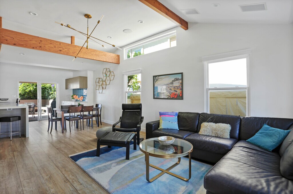 Immerse yourself in a spacious 2,000+ sqft North Pacific Beach home with a 4-car garage. Enjoy ocean views, a large patio with a firepit and BBQ, and a master bath with dual shower heads and a sauna. With in-unit laundry, HVAC, and solar panels, this pet friendly retreat offers luxury and comfort.