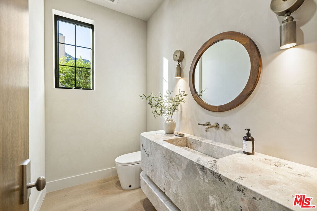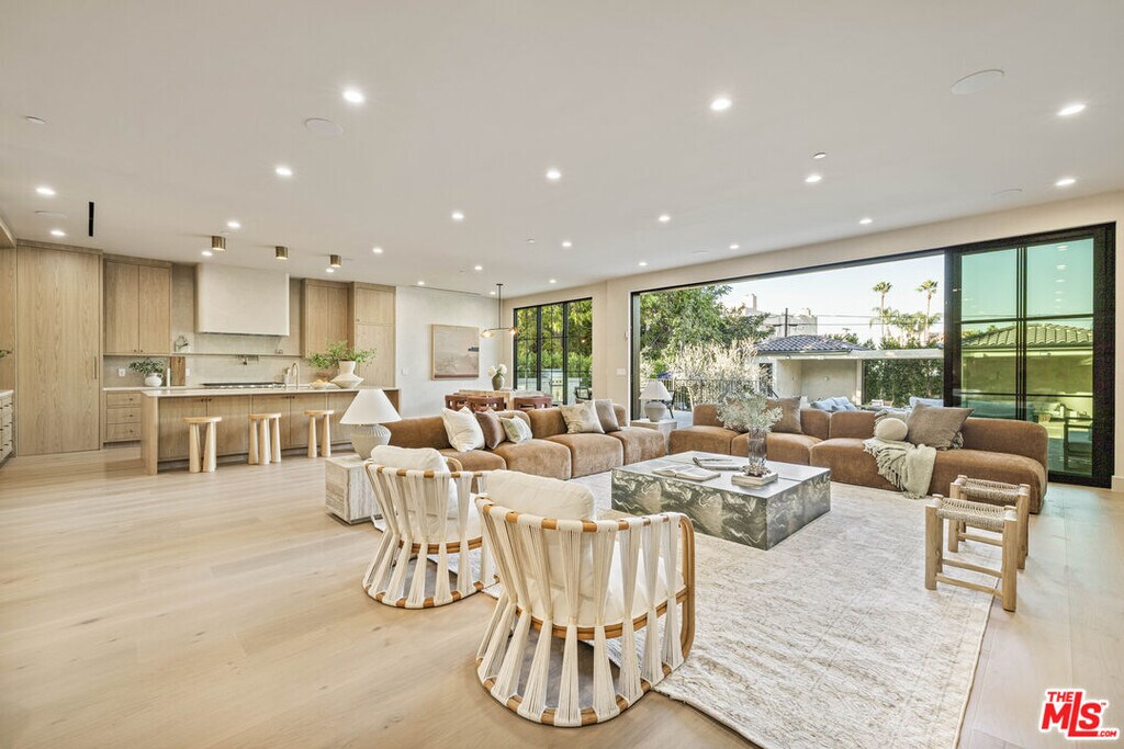 AVAILABLE FOR SALE AND LEASE. Welcome to Casa Verde, one of the largest and most extraordinary homes ever built south of the Boulevard in Sherman Oaks. Set on an expansive 13,000 sq ft lot, this 5-bed, 7-bath estate blends timeless European influence with high-end contemporary design, featuring hand-applied limewashed walls, a sculptural plaster staircase, and natural light pouring in from every angle. Step through the custom oversized pivot door and you're immediately met with soaring ceilings and a floor plan crafted for true indoor/outdoor entertaining. A large custom bar sits at the center of the home, creating a stunning focal point and seamless flow into the expansive dining area, where floor-to-ceiling sliders open to a private outdoor sanctuary anchored by a limestone fireplace. The chef's kitchen features custom white oak cabinetry, travertine counters, and panel-ready appliances that disappear into the design. A hidden butler's kitchen with its own cooktop, sink, dishwasher, and walk-in pantry keeps prep work tucked away when hosting. The generous family room opens to the oversized backyard with ample patio space, an outdoor kitchen, large pool, two covered cabanas, and a full bathroom. The main floor is completed with a large home theater, office, bedroom and reading nook. Upstairs are 4 additional bedrooms, each with its own en-suite bath and walk-in closet. The oversized primary suite offers a floor-to-ceiling stone fireplace, two balconies, an expansive walk-in closet, and a private bonus room ideal as a yoga studio, nursery, or second closet. The spa-like bathroom features a large zellige-tiled rain shower, freestanding tub with mountain views, makeup vanity, and dual water closets.Tucked in an exceptional walkable pocket, Casa Verde is moments from some of the city's best restaurants and coffee shops, Anajak Thai, Bacari, The Blvd, Cream, and more, as well as The Buckley School. This is a rare opportunity to own a statement property defined by scale, design, and craftsmanship. MLS# 26694759