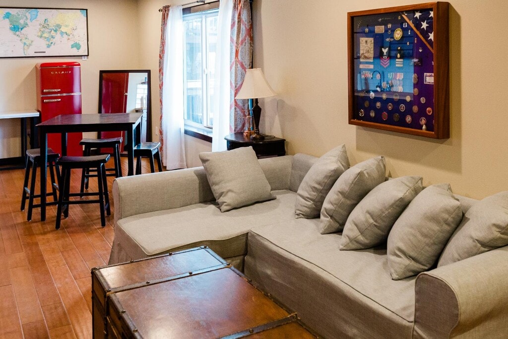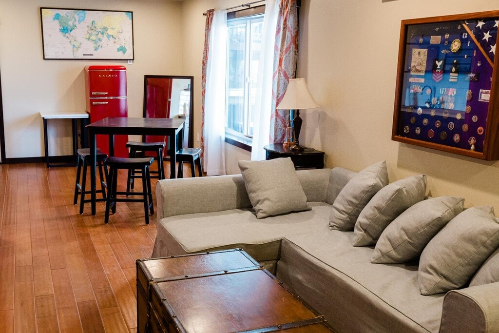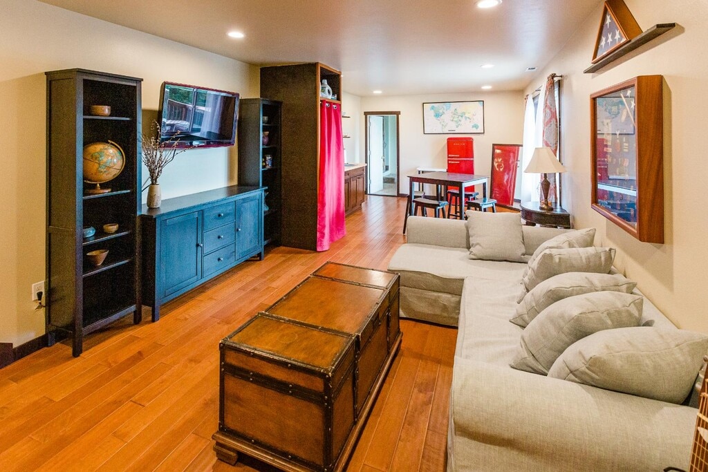 Full washer/dryer. Kitchenette. Rain shower. Private entrance. Quiet. One bedroom with beautiful view. Perfect for the 3-6 month traveling professional. Safe walking neighborhood. Pets are always welcome.