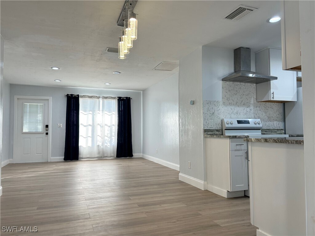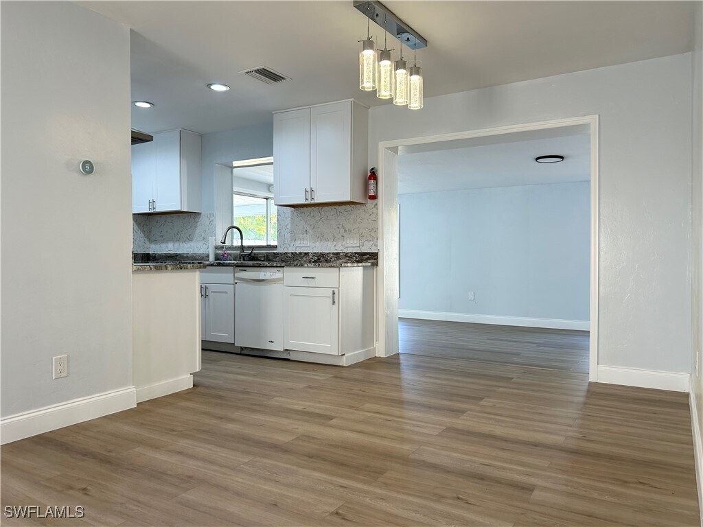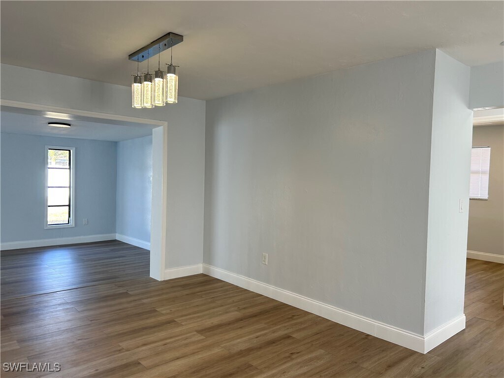WATER & ELECTRICITY ARE INCLUDED in the rent,offering exceptional value. Beautifully updated 3-bedroom,2-bath single-family home located in a well-established Southeast Cape Coral neighborhood. This move-in-ready residence offers 1,435 sqft. of living space with a split-bedroom floor plan for added privacy. The open-concept living area is filled with natural light,creating a bright and inviting atmosphere. The kitchen features granite countertops,a modern backsplash,and ample cabinet space,ideal for everyday living and entertaining. Spacious bedrooms offer large windows and abundant natural light. Fully fenced backyard,perfect for relaxing and entertaining. Conveniently located just off Del Prado Boulevard with quick access to schools,shopping,dining,and entertainment. Just minutes from Horton Park and Boat Ramp. Garage is not included.