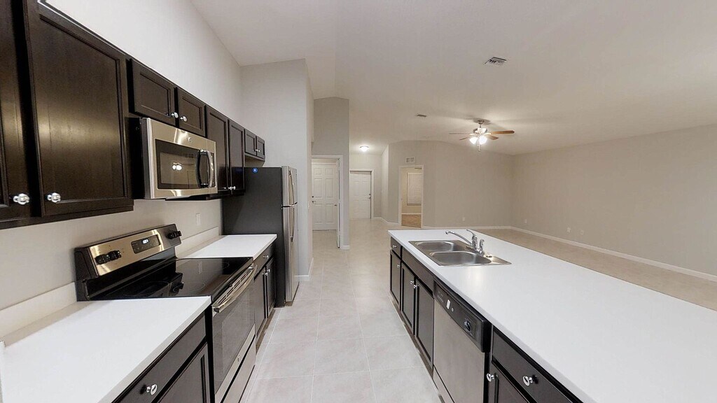 This fully fenced home is a perfect rental opportunity, featuring the privacy of a fenced yard and a two-car garage. The kitchen is modern, with sleek, dark cabinets, stainless steel appliances, and in unit washer and dryer. The layout boasts a large open space, perfect for living and dining areas. The master suite offers walk in-closet, dual sinks, and a spacious shower. Convenience is key, as this home is equipped with a smart lock and thermostat. This home is also newer so there are outdoor outlets and 2 outdoor water spigots. Additionally, lawn care is included in the rental, allowing you to enjoy a well-maintained yard without the hassle. This move-in ready home is perfect for those looking for a clean, comfortable living space. What's included in monthly rent? - Lawn care service (up to 2x/mo) - Sewer (home uses setpic) What's not included in monthly rent? - Water/Trash/Recyling by City of Palm Bay - Electricity by FPL - Internet Renter guidelines: - Credit score 650+ - No delinquent or collection accounts - No bankruptcies or foreclosures - Monthly income 3x rent - 1 year consistent employment - 3 years of rental history with no evictions and no late payments. We do not use Avail applications. We use Stessa rental application which includes a background check, employment verification, credit screening (soft inquiry), and leins check. Application fee is $64. Everyone going to reside on the premises over 18 years of age must fill out an application. These additional household members can be added in the "Co-Applicant" section of the Stessa rental application.