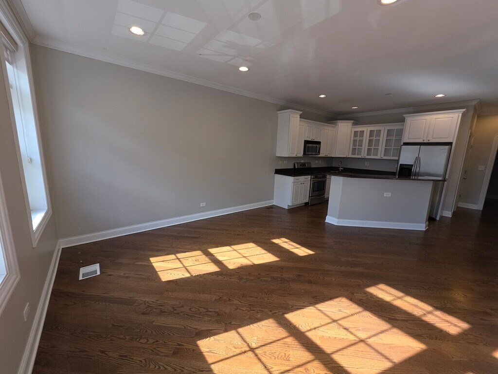 Bright & spacious south facing Southport Corridor extra-wide three bedroom,two bath condo in Burley School District! Open floor plan features beautifully refinished,dark stained,diagonal hardwood floors,recessed lighting,& neutral paint throughout. Large living/dining/kitchen area with corner gas fireplace and tons of windows. Updated kitchen with custom white cabinetry,granite counter tops,stainless steel appliances,and large island with breakfast bar. Spacious primary bedroom with updated en-suite bathroom with marble countertop,walk-in shower,and whirlpool tub,great closet space,and sliding doors to a huge private balcony which can also be accessed from the hallway. Two additional generously sized bedrooms and a second full bath. In-unit laundry,two tandem parking spaces,6' x 6' private walk-in storage closet in basement and common rooftop deck. Amazing Southport Corridor location is close to tons of shopping,and dining options on Southport and Belmont,Whole Foods,Jewel,Target,LA Fitness,CTA Brown line,multiple bus lines,Wrigley field,& lake front. No pets allowed. Available immediately! Owner prefers 16 or 17 month lease. MLS# MRD12501176 Based on information submitted to the MLS GRID as of [see last changed date above]. All data is obtained from various sources and may not have been verified by broker or MLS GRID. Supplied Open House Information is subject to change without notice. All information should be independently reviewed and verified for accuracy. Properties may or may not be listed by the office/agent presenting the information. Some IDX listings have been excluded from this website. Prices displayed on all Sold listings are the Last Known Listing Price and may not be the actual selling price.