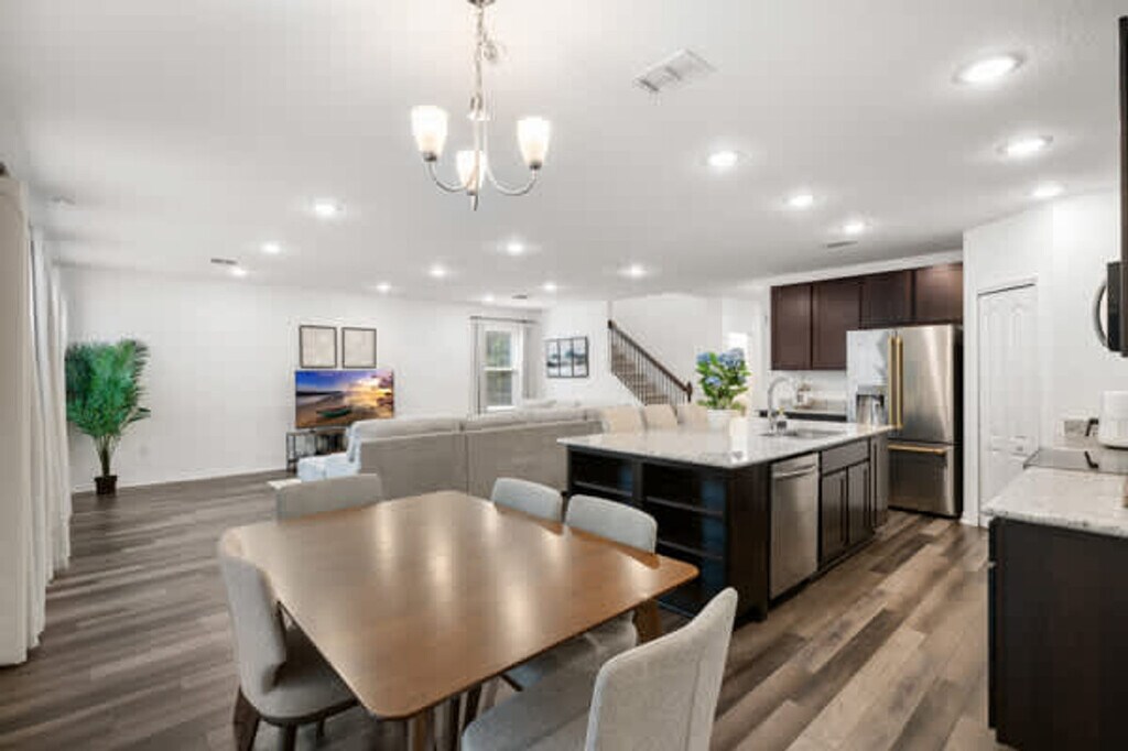 Welcome to a Springhill family retreat! Feel at home in this newly built spacious 5-bedroom, 4.5-bathroom home, the perfect retreat for family vacations. Tucked away in a quiet, peaceful neighborhood, it offers plenty of room for everyone to relax and unwind, with generous living areas, a huge loft, comfortable bedrooms, and thoughtful amenities. Step inside to a bright, spacious open-concept layout with warm natural light and modern finishes throughout. The cozy living room invites relaxation, while the fully equipped kitchen and breakfast bar is ready for any morning, and a formal dining table is set for family dinner. The kitchen is stocked with everything you need to cook and dine comfortably, including full-size stainless steel appliances, cookware, utensils, dishes, a Keurig coffee maker, a refrigerator, a toaster, a dishwasher, and a microwave. Every stay includes a starter pack of amenities: 1 paper towel roll, 1 new roll of toilet paper per bathroom (plus extras under the sink), hand soap in each bathroom and kitchen, 1 new sponge, dish soap and 3 dishwasher tabs, 1 set of travel-sized shampoo, conditioner and body wash per bathroom, a few trash bags and 1 in the bin upon arrival, and 3 laundry pods. A pack ’n play is available. You’re just minutes away from Springhill's top attractions: Anderson Snow Park, Weeki Wachee State Park, Adventure Coast Fun Park, Buccaneer Bay, Tampa Outlet Mall, and Boyett's Grove & Citrus Attraction. Whether you’re exploring downtown, catching a sunset, or trying out local cuisine, everything Springhill has to offer is right at your doorstep. Located in a quiet residential area, you’ll enjoy the peace of a local neighborhood while staying close to convenience stores. Explore nearby cafes, boutique shops, and beautiful walking spots. A Vivent Security System is installed with front and back door cameras for guest safety. Please respect quiet hours after 10 PM. No parties or unauthorized events are allowed. [SI]