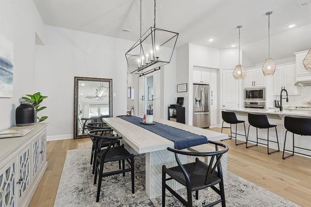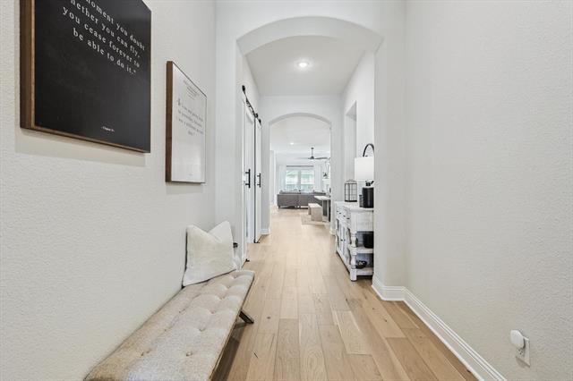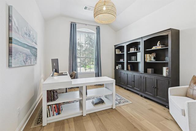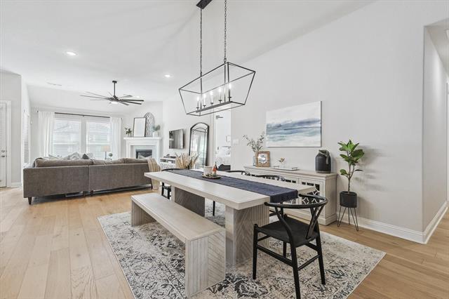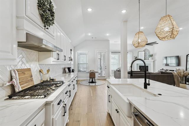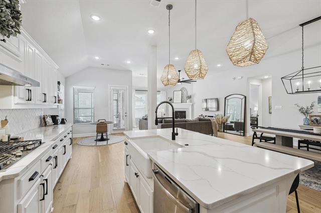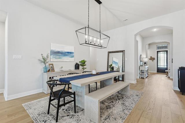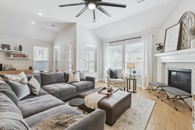 Stunning single story Highland Home w-3car garage! This home features white oak hardwood floors throughout main living areas, beautiful fixtures, updated bathrooms, screened in patio and whole-home water filtration system. Kitchen, dining and living space is perfect for entertaining. White cabinetry, quartz countertops, gas stove, and huge island are stunning, and the extended countertops provide amble space for cooking and storage. Large dining area and table fits 6-8 comfortably, and living room features a beautiful gas fireplace and abundance of natural light. Secondary bedrooms are split w- one in the front of the home w- full bath, two more w- full bath down the hall and primary suite is tucked away from the rest, w-ensuite bathroom w-dual sinks, deep tub, huge shower and two walk in closets! One of which has been completely built out. Situated on a quiet street minutes away from key amenities, events, and Argyle West Elem School. Landlord pays HOA dues, which include basic cable, internet, all amenities and lifestyle events!