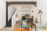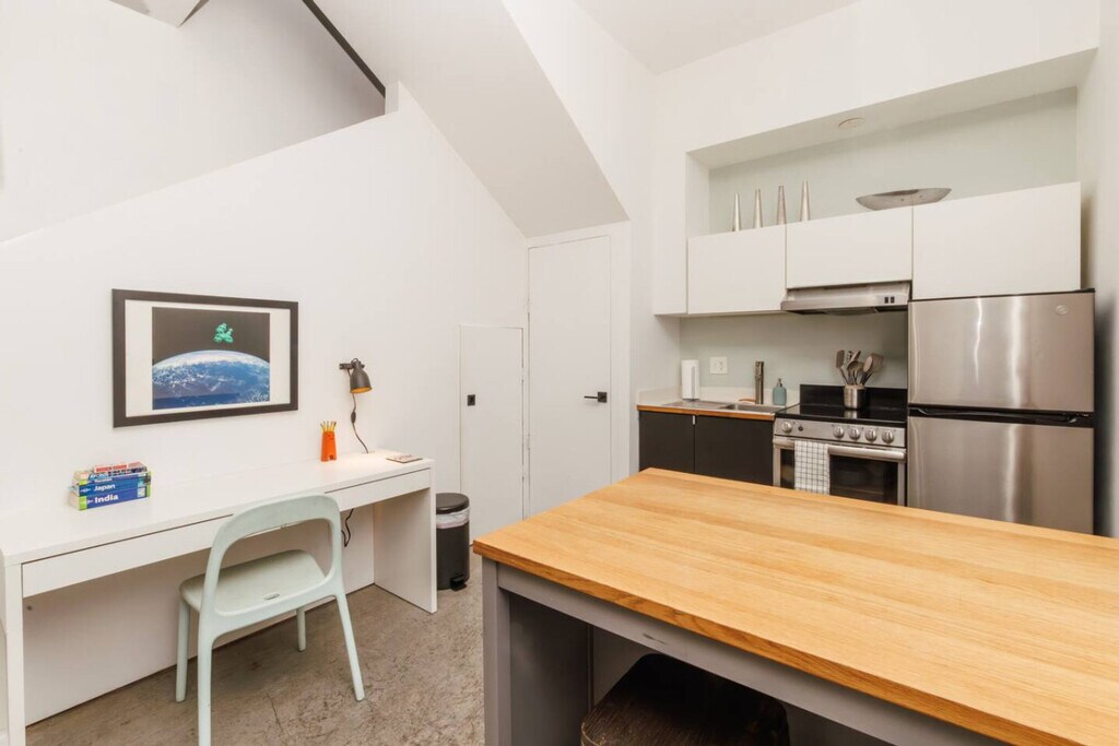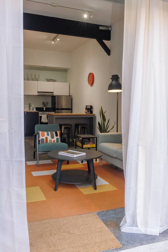 The advertised rate of $2,151/month is the lowest available price, based on a 30 day(s) stay with a move-in date of March 14, 2026. Rates vary depending on the duration of stay, season, and other parameters. For exact pricing and additional pricing components, please visit our website and enter your desired move-in and move-out dates. The rate is applicable when billed upfront; it can be higher if billed in multiple payments. Feel at home in this renovated 1-bedroom loft, a former artist's studio, offering urban living steps away from Washington Park along the Streetcar line. This unique space features 20'+ ceiling height, a 400sf ground floor living space with a 200sf bedroom loft with full bathroom, and an equipped kitchen. Enjoy amenities such as Wi-Fi, AC, and a combo washer/dryer. The 9' overhead roll-up garage-style door to the alley with smaller passage door and skylight add to the apartment's character. Located in the heart of the bustling OTR neighborhood, this apartment is within walking distance of OTR shops, bars, restaurants, event venues, and Cincinnati's cultural center, Music Hall. TQL stadium is steps from the front door. With a Walk Score of 97 out of 100, the location is a true walker's paradise. There's a free streetcar nearby that will take you through much of downtown and Over the Rhine, allowing you to easily access popular destinations. The neighborhood is extremely bikeable, with Cincy Redbike stations scattered everywhere. The entrance of this apartment is down an alley, and the main entrance is part of a garage door. Parties and amplified music are strictly forbidden without advance written consent. Under Ohio Revised Code and Cincinnati municipal code, throwing an unauthorized party is considered criminal trespassing. If you throw an unauthorized party, charges may be pressed for criminal trespass, and you and your guests may be arrested on-site and prosecuted to the full extent of the law. Please observe quiet hours from 9:30pm-8am. In the event of a disturbance, one polite request (warning) may be given to come into compliance. If the request is not honored then your reservation will be terminated without refund. Amplified music is strictly forbidden at all hours without advance written consent. Do not smoke or light anything in this property. This includes tobacco, marijuana, incense, candles, hookah, and anything else. Cleanup of human biomaterial (e.g. vomit, defecation) will result in a minimum $300 cleaning fee. Pet hair will incur a $300 cleaning fee for cleanup of excessive pet hair. Stains on the carpets or linens will incur an $89 cleaning fee per item or cost to replace, whichever is higher. Smoking anything indoors will incur a $300 cleaning fee. There is a $170 re-keying fee for unreturned keys. Units found with unreasonable amounts of waste, in complete disorder, and/or “trashed” will be subject to an additional $200 cleaning fee, or actual cost to clean, whichever is higher. If security / fire department / police fees or other costs arising out of or in connection with your behavior at the property are incurred, then you will be billed the cost. The minimum security fee is $150. [SI]