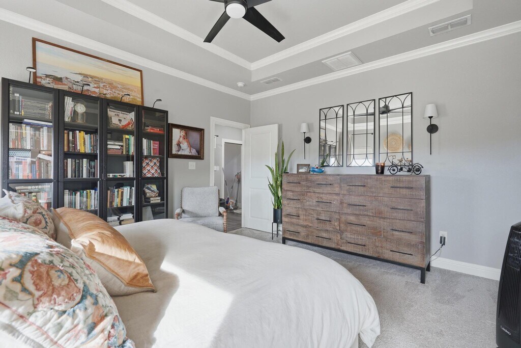 This beautiful 4-bedroom home boasts tall ceilings, an open floor plan with all the amenities, on a large and quiet lot within the Hunters Landing Subdivision. It has a large, fenced in back yard with a sprinkler system and covered patio. The kitchen is set with an RO System and the home has a water softener. You'll fall in-love with the walk-in pantry, built-in lockers, and separate laundry room. The master bath has a separate shower and jetted tub with his and her sinks. You will have access to the neighborhood swimming pool without having to pay the HOA dues, as that and pest control is covered. If you are looking for space in a nice new home that's secure and quiet, look no further!