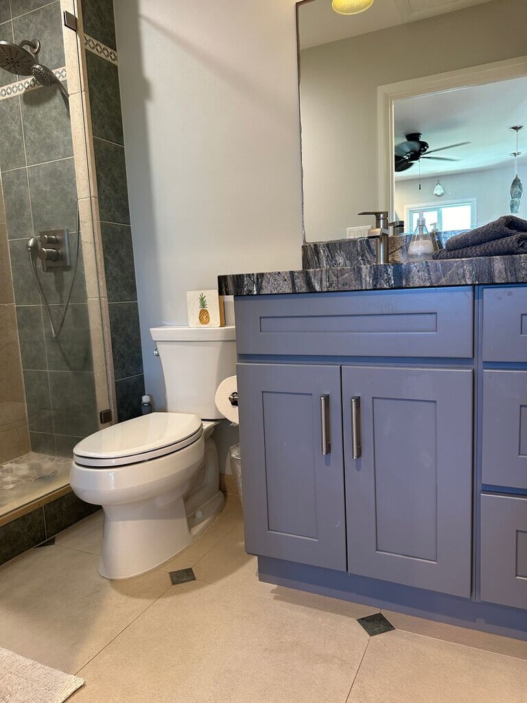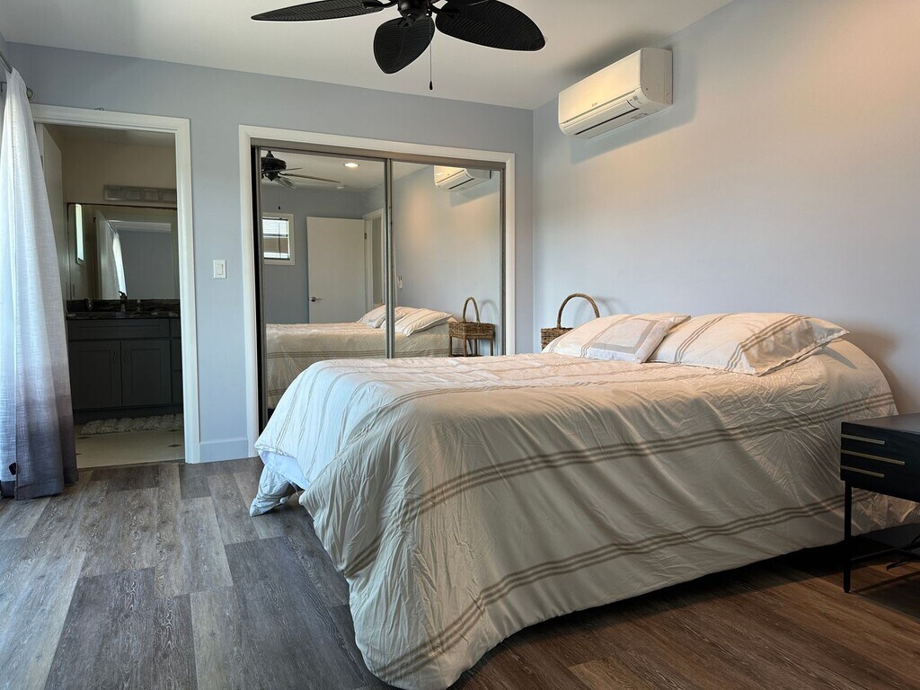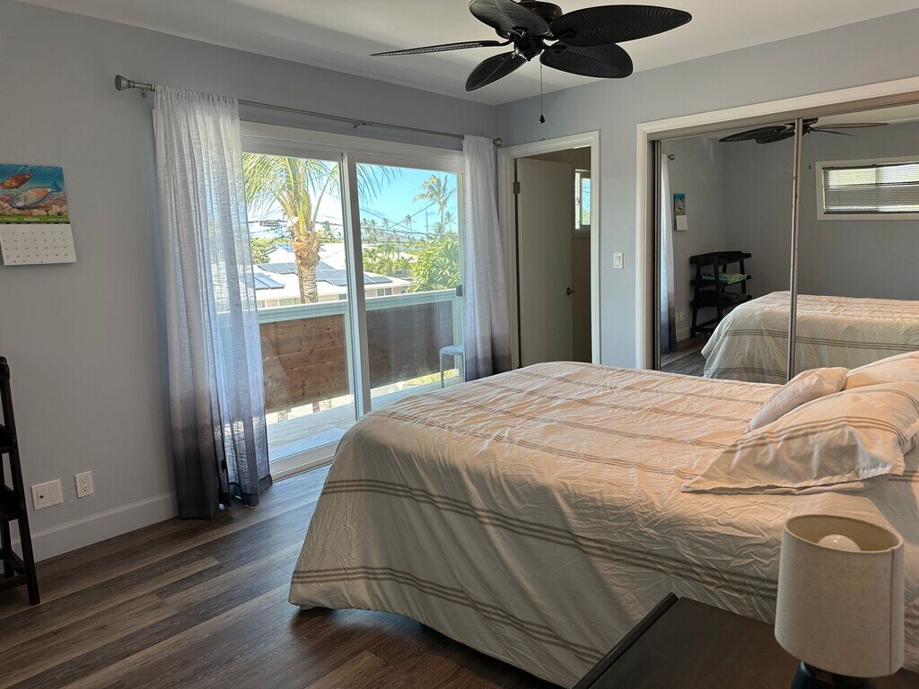 Beautifully appointed 1 bedroom with 2 full baths ADU. FULLY FURNISHED. Located above the garage. Enjoy your large lanai off of the bedroom. Split a/c and ceiling fans. New appliances.