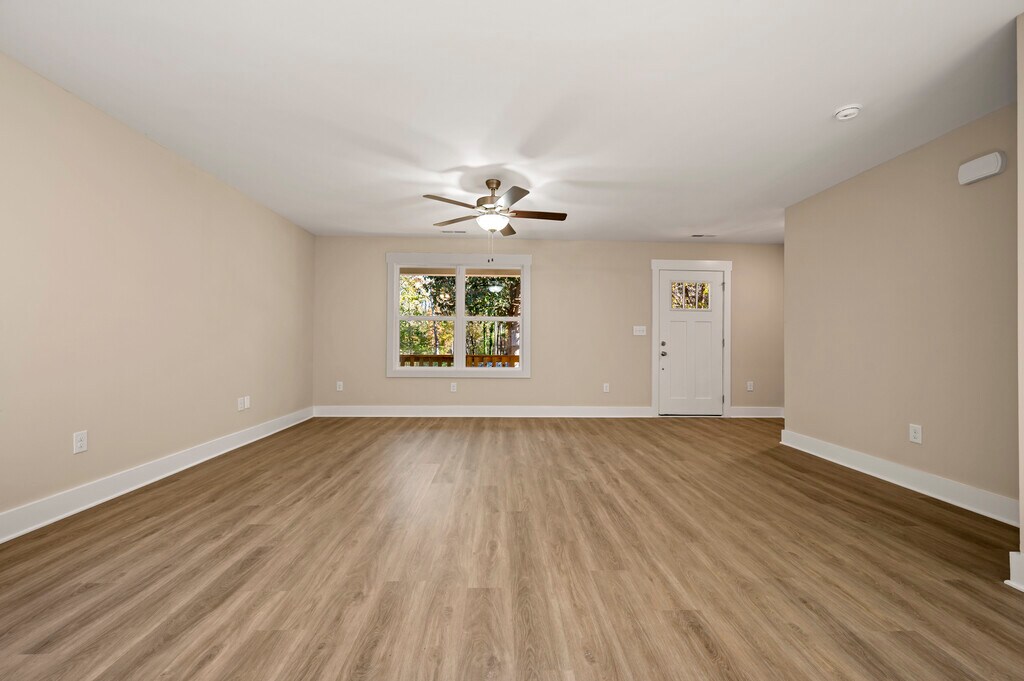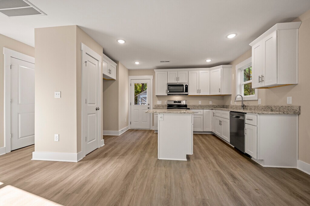 Experience the perfect blend of modern living and natural beauty in this brand-new two-story home on a 0.66-acre creekfront lot, just a short walk from downtown Forest City. Nestled on a tree-lined corner lot, this property offers both privacy and convenience. Inside, you'll find 3 bedrooms and 2.5 baths, including a spacious living room that flows seamlessly into the modern kitchen—ideal for entertaining and everyday living. A convenient half bath on the main level adds ease for guests, while the upper floor hosts all bedrooms for added privacy. Step outside onto the covered front porch to enjoy the scenic creek views and the tranquil sound of flowing water. The backyard shed offers great space for hobbies, tools, or lawn equipment. With its prime location, private setting, and modern finishes, this home is a rare find near the heart of Forest City! Owner will consider owner financing and lease to own!