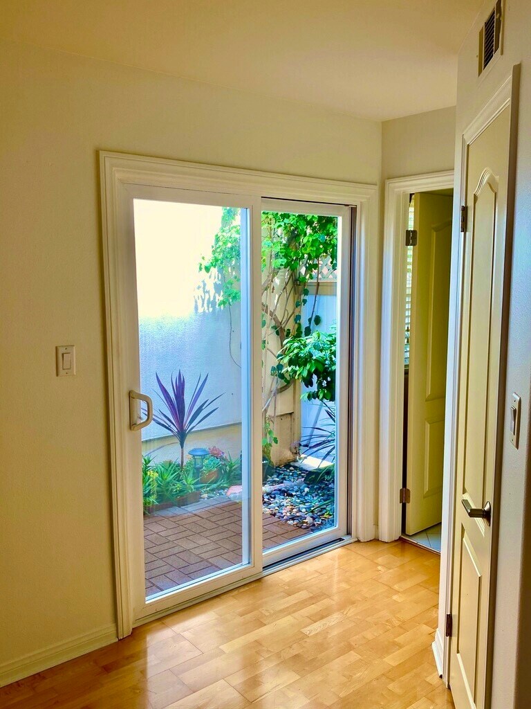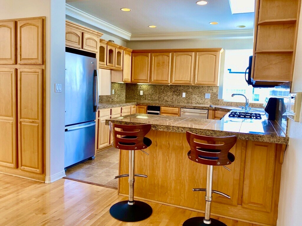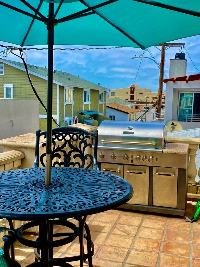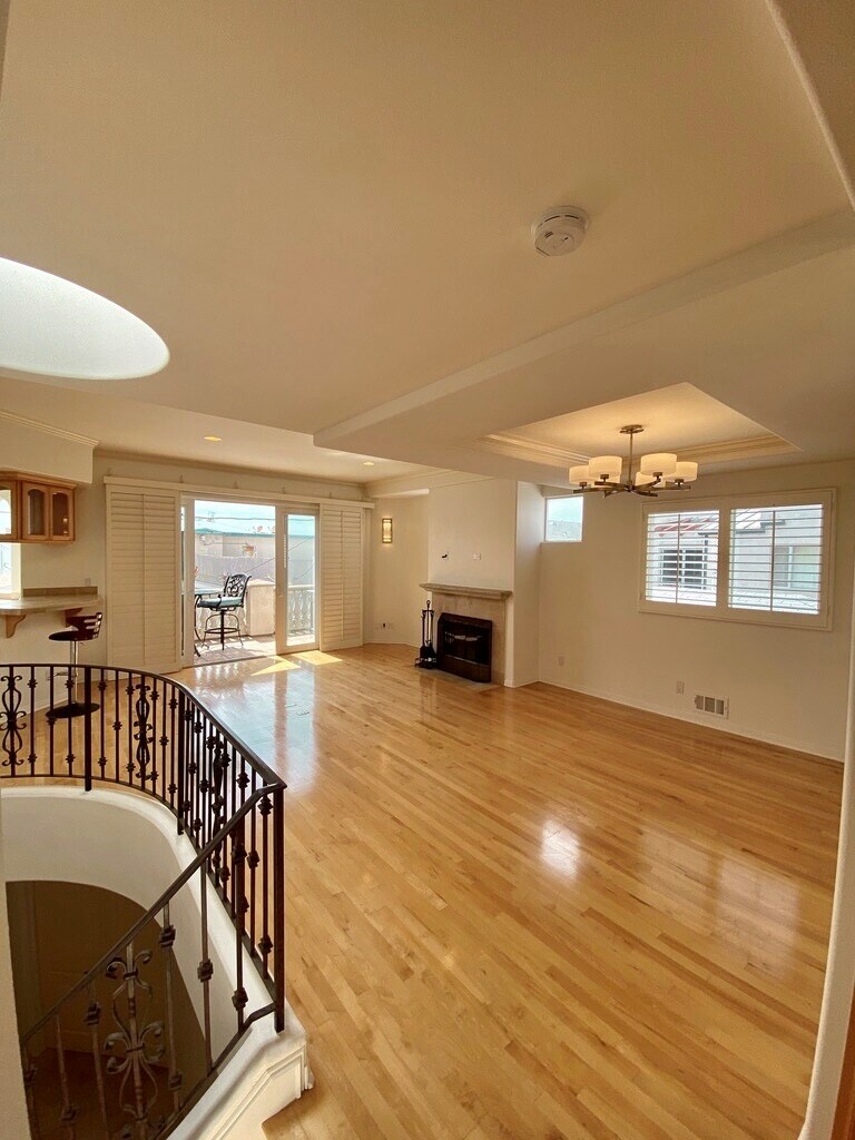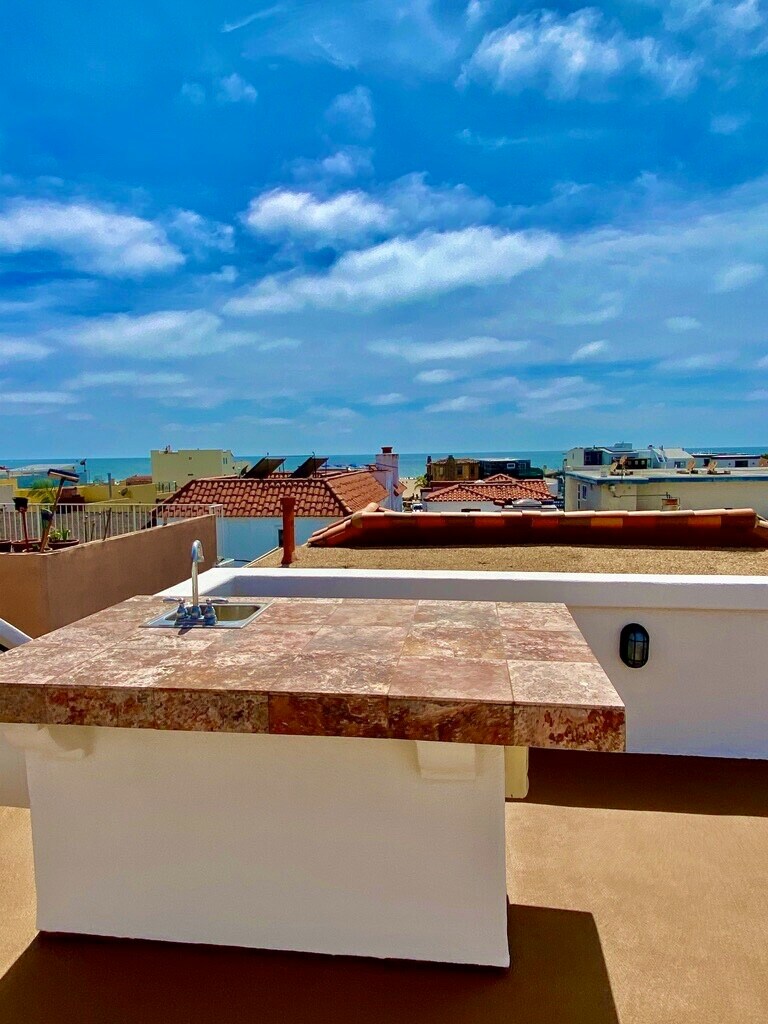 One block from Strand and beach. All bedrooms have their own bathroom. This Beautiful townhome built in the year 2000 is only a block to the beach and features 3 large bedrooms and 3.5 bathrooms. Fine finishes include hardwood floors, granite countertops, marble entry, crown moldings. Turnkey condition throughout. The home has an upstairs living area with beautiful refinished hardwood floors, lots of light with skylights and large sliding doors to a large balcony that includes an elegant bistro bar table. The gourmet kitchen has granite counters, plenty of cabinet space, stainless steel appliances, includes,Refrigerator•Wine Cooler a breakfast bar seating. The living area includes a formal dining area, living room with plantation shutters and flat screen television, fireplace and a large wet bar area great for entertaining. There is also a guest bathroom on this floor. Upstairs is a large roof top deck with spectacular ocean views from Malibu to Palos Verdes. Great place for entertaining. Large Wet Bar with large window that opens up to balcony for entertainment. Spacious master bedroom suite with plantation shutters, fireplace. tub spa and walk-in closet. 2nd bedroom includes a private patio and a small dog run area. Oversized 2 car garage that includes plenty of built-in storage plus an extra parking space in front of garage. Walking distance to downtown Hermosa and just steps away from the ocean and the strand.