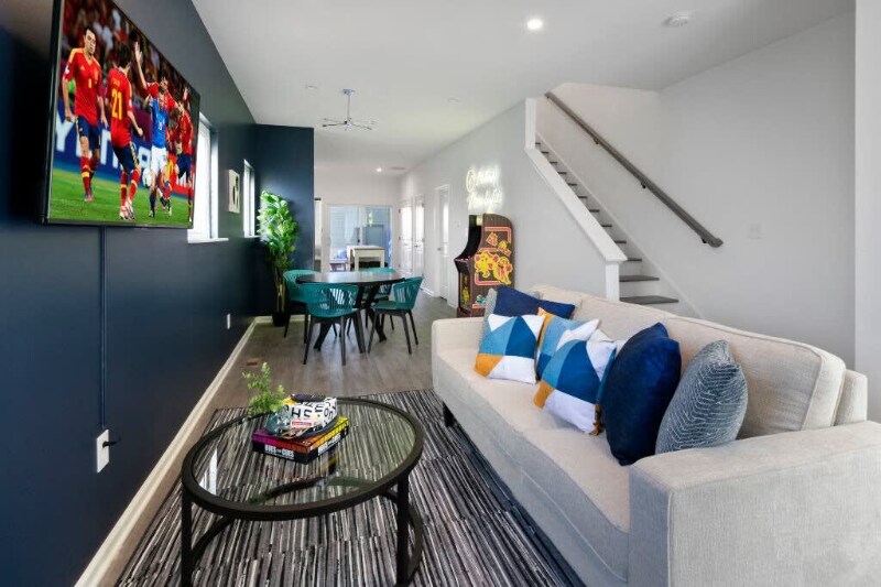 Property Id: 2118281 Two homes in one! Fit the entire family, soccer team, or work team here. We have two jacuzzi's, two separate yards, and more! Experience the best of Indy in this unique dual-home retreat! Perfect for large families, business travelers, and groups, this spacious stay offers privacy with two separate entrances while still enjoying shared amenities. Highlights: ? Sleeps 16 - 6BR, 5BA, perfect for group stays. ? Dual Living Spaces - Two kitchens, lounges & dining areas. ? Prime Location - Minutes to Downtown & Lucas Oil. ? Entertainment-Ready - Two vintage arcade machines, a variety of board games, and two outdoor Smart TVs. ? Private Outdoor Jacuzzis - Two hot tubs with 27 jets & contour seating for ultimate hydrotherapy relaxation. ? Fire Pits & Outdoor Fun - Two propane fire pits, Adirondack lounge seating, outdoor games like ladder ball & cornhole. ? Grills & Heat Lamps - Two propane grills and patio heat lamps for outdoor comfort year-round.