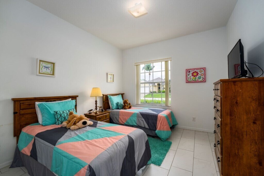 Feel at home in this spacious 4-bedroom, 3-bathroom home located in the serene Calabay Parc community in Davenport, Florida. With 1,903 sq. ft. of living area, this home offers a private screened west-facing swimming pool and spa, perfect for relaxation. The property includes a fully equipped kitchen, a living room with a 50” flat-screen TV, and a dining room with a 6-seat dining table. Driveway parking is available for up to 2 vehicles, with additional street parking options. This home is designed with comfort in mind, featuring a fully equipped kitchen with a 4-seat breakfast bar and an eat-in kitchen with a 4-seat dining table. Enjoy the convenience of in-home laundry with a full-size washer and dryer. The living room is equipped with a 50” flat-screen TV, a sectional sofa, a loveseat, and a chair, providing ample seating for relaxation. Central air-conditioning and heating ensure a comfortable stay, and fresh towels and linens are provided. Optional pool heat is available for an additional charge of $35.00 per day, which must be arranged prior to check-in. Mid-stay cleaning services can be requested for an additional fee. Parking is available for up to 2 vehicles in the driveway, with additional street parking options. Please note that boats, trailers, RVs, campers, commercial vehicles, and large trucks are not permitted to park in the community except for loading and unloading purposes or with preapproval from the HOA. Located just a 20-minute drive from Walt Disney World® Resort, this home is ideally situated for exploring the best of Florida's attractions. Nearby, you'll find a variety of dining and shopping options, including Starbucks, Publix Super Market, and Target. For golf enthusiasts, the Highlands Reserve Golf Club and Champions Gate Golf Courses are just a short drive away. The property is also conveniently located near major attractions such as SeaWorld, Universal Studios, and LEGOLAND® Florida Resort. Check-in is at 4:00 PM and check-out is at 10:00 AM Eastern Time, with self-check-in provided via a Smart Lock. Quiet hours are from 9:00 PM to 8:00 AM Eastern Time, and no parties, smoking, or pets are allowed. If house rules are broken, a charge of $300.00 plus any damages will apply. Major violations can lead to eviction with no refunds. The home is self-catering, so guests are responsible for their own food, condiments, toiletries, and cleaning supplies. A cleaning fee applies for all stays, and mid-stay cleaning services are available for an additional charge. A desk area is available in one of the bedrooms, providing a convenient space for remote work. Free Wi-Fi is available throughout the home, ensuring you stay connected during your stay. A laptop computer is not included. [SI]