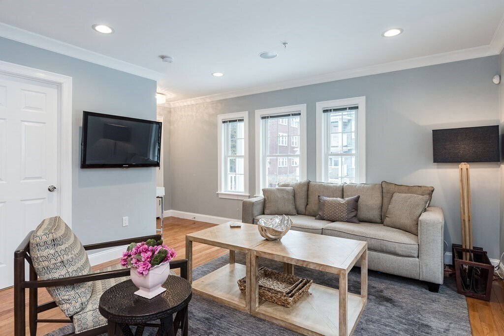 Stunning,fully renovated 2 bd/2 ba floor through in the heart of Jamaica Plain w/ 1 parking spot INCLUDED,private deck,in-unit laundry & central air AVAIL NOW. Private entrance leads to a sun-filled open concept floor plan perfect for entertaining w/ abundant natural light & tasteful renovations throughout. Spacious & sunny LR opens to the dining area w/ ample space for a table that seats 4-6. State-of-the-art chef's kitchen features a breakfast bar that seats 3,granite counters,stainless steel appls & combo W/D unit. 2 equally sized bedroom stes accommodate queen sized beds w/ large closets & offer renovated full baths. This home is complete w/ a large private deck,generous storage space throughout,recessed lighting,central air & in unit laundry. Located moments from the Orange Line,Franklin Park,dog parks,Centre Street shops &restaurants & the Arnold Arboretum. Dogs allowed (no more than 1 dog-must be under 75lbs). Property can be rented unfurnished,or partially furnished MLS# 73468503