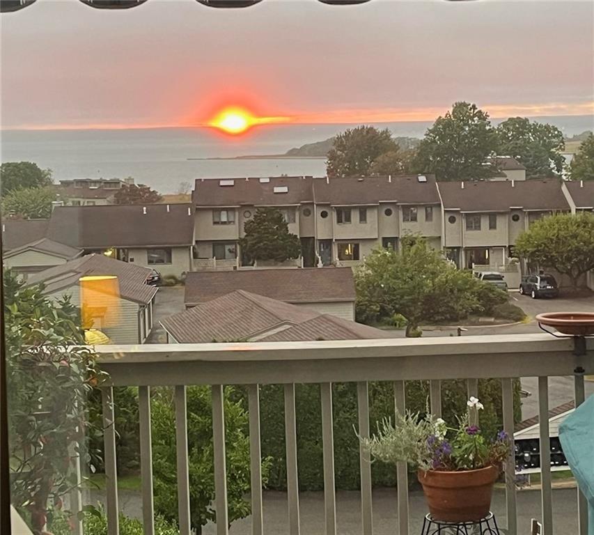 Step into this perfectly maintained townhouse style condominium in highly sought after North Farm. Discover beautiful water views on every floor from its elevated location on a hillcrest overlooking Narragansett Bay. The open concept first floor features a gas fireplace,wood and tile floors,and a living/dining area that open onto a deck,kitchen and powder room. The second floor features two generously sized bedrooms with wood floors,full jetted bath and shower,washer/dryer and ample storage. With stunning views to the west,the third floor boasts cathedral ceilings,skylights,an ensuite bath,and a walk-in closet. The ground floor level entrance includes a tandem garage and additional storage. North Farm is a private gated development that includes the following amenities: private beach access,dock,kayak/boat storage,boat launch,moorings,yacht club,clubhouse,tennis/pickleball courts,arboretum,outdoor pool with pool house,beautiful grounds and direct access to the East Bay Bike Path.