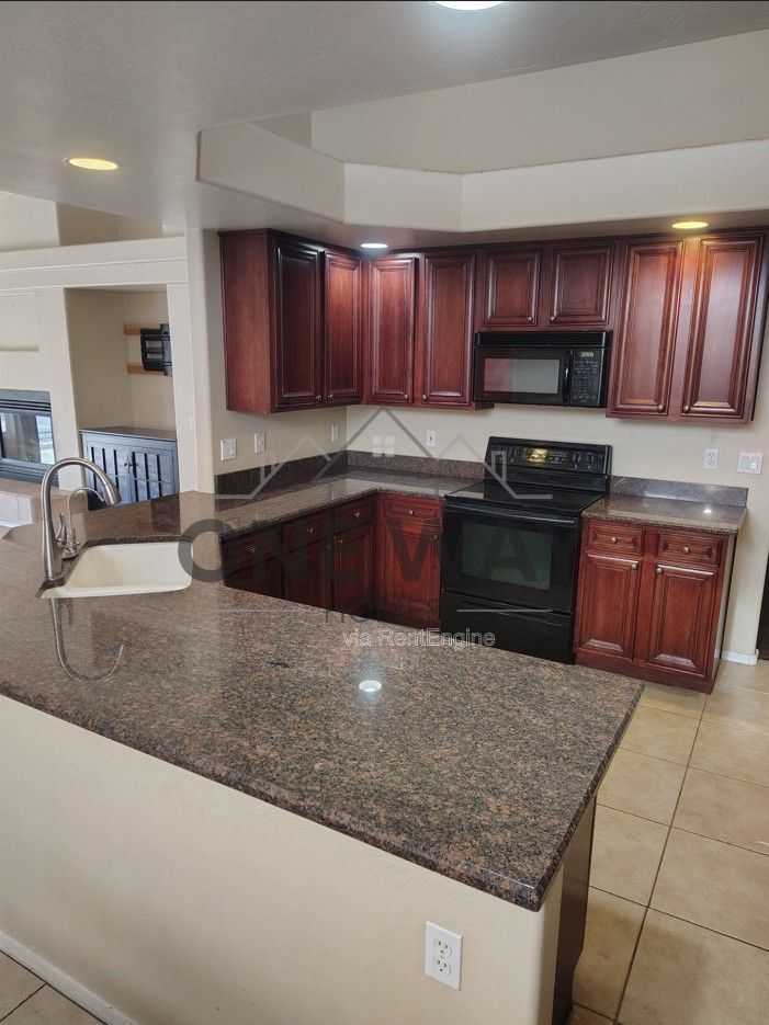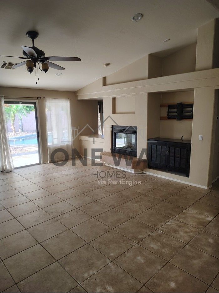 Perfectly located and thoughtfully designed, this home offers the ideal blend of comfort and style. Just a short walk to an award-winning school and nearby park, the location is hard to beat. Inside, you'll find a spacious open floor plan with vaulted ceilings, plantation shutters throughout, and a two-way fireplace that connects the formal dining area to a versatile game room. The home features four generously sized bedrooms, all with ample space to spread out. The custom gourmet kitchen is a standout, complete with granite countertops, abundant cabinetry, and plenty of room for cooking and entertaining. Step outside to a massive backyard built for entertaining, featuring a resort-style Pebble-Tec pool and spa, gas fire pit, and two extended patios with multiple access points. There's also an RV gate with additional parking for convenience. The oversized split primary suite offers a private retreat with a walk-in closet, dual sinks, a separate garden tub, and a large walk-in shower with wall-to-wall mirrors and a dedicated vanity space. Additional highlights include a three-car garage with extra storage. Don't miss your chance to see this incredible home in person—schedule a showing today! By submitting your information on this page you consent to being contacted by the Property Manager and RentEngine via SMS, phone, or email.
