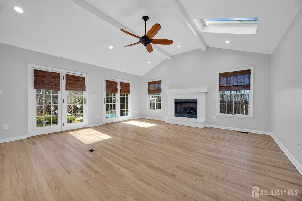 Located in a prime location,this beautifully updated home offers both style and comfort. The modern kitchen features granite countertops,stainless steel appliances,ample cabinetry,and a breakfast island perfect for everyday living and entertaining. The spacious family room boasts high ceilings,skylights,a cozy gas fireplace,and is filled with abundant natural light throughout. The home offers 3 bedrooms and 2 full bathrooms,along with a fully finished basement that includes an additional bedroom,gym area,recreation room,full bath,and a custom laundry room. Step outside to a resort-style backyard featuring a stunning in-ground heated pool,stamped concrete patio,and multiple private sitting areasideal for both relaxation and entertaining. Please note: some pool photos are from the previous summer season. Conveniently located just minutes from Route 130,shopping centers,and top rated restaurants. Recent updates include: New roof (2025) Heating & cooling system (2023) Water heater (approximately 6 years old) Freshly painted (2026) Refinished hardwood floors (2026) Recessed lighting installed throughout the home (2026)