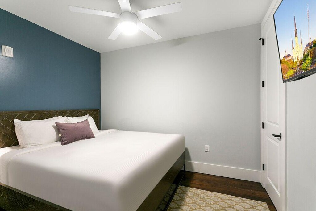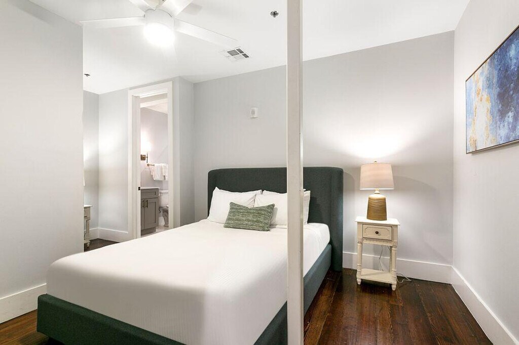 Welcome to your modern 2-bedroom, 2-bathroom retreat at The Irish House. This thoughtfully designed unit combines elegant decor with modern amenities, ensuring a comfortable and stylish stay in the heart of New Orleans. Step into a spacious living area adorned with tasteful furnishings, perfect for relaxing and unwinding after a day of exploring. The fully equipped kitchen features state-of-the-art appliances and everything you need to prepare delicious meals, ideal for both short-term and extended stays. Each bedroom is a haven of tranquility, offering plush bedding and ample storage space. Enjoy the convenience of in-unit laundry facilities, high-speed Wi-Fi, and flat-screen TVs in both the living area and master bedroom. Large windows flood the space with natural light, enhancing the warm and welcoming atmosphere. Paid parking is available on the premises. The location is amazing, situated in one of the safest areas in New Orleans. The famous New Orleans streetcars stop right in front of the property, providing easy access to the French Quarter. A variety of popular restaurants and bars are just steps away, offering you a true taste of the city's vibrant culinary scene. Local attractions include the French Quarter, Bourbon St., the National WWII Museum, Ernest N. Morial Convention Center, Harrah's New Orleans Hotel & Casino, Audubon Aquarium of the Americas, several jazz clubs and bars in the French Quarter, and the Superdome Stadium. House parties and illegal substances are strictly prohibited and will result in immediate eviction. Violators will be charged a $500 fine. No smoking in the unit or on the balcony. Any violation of the smoking policy will incur a $250 fine, plus cleaning costs necessary to remove smoke odors. Pets are not allowed. Violation of the pet policy may result in a $500 fine. Quiet hours are observed from 9 p.m. to 8 a.m. Violators will be charged a $200 fine. The number of overnight guests cannot exceed the maximum occupancy. Extra guests and visitors are not permitted without management consent. Violators will be charged a $200 to $500 fine.