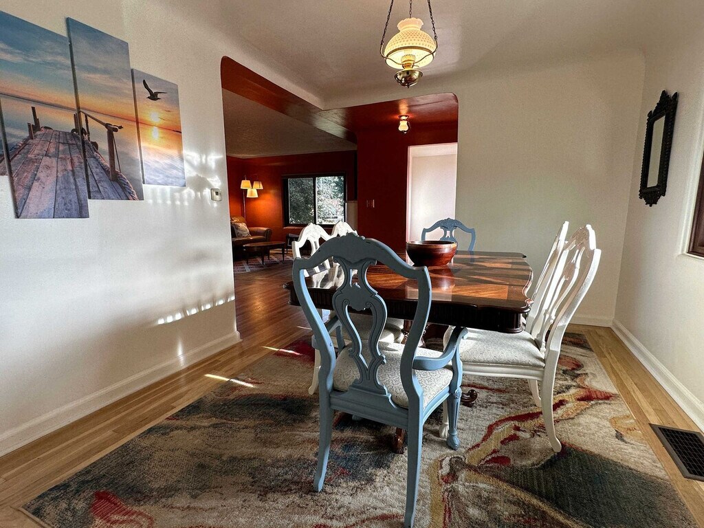 Step into a different era at this charming two-story Tudor-style home, full of character and cozy warmth. Feel at home in this delightful retreat for couples, families, or small groups. The spacious country kitchen includes a sweet breakfast nook, perfect for morning coffee or catching up over dinner. A private back deck offers peaceful outdoor space, ideal for enjoying fresh air or dining al fresco. This charming home features loads of vintage personality. Conveniently located near Railroad Bridge Park and just minutes from shopping, restaurants, and freeway access, you’ll have the best of Sequim at your doorstep. Quiet hours are between 10 PM and 7 AM. Unauthorized pets will incur a $250 penalty fee and you are subject to immediate eviction. If pet droppings are found on the property there will be an extra charge of $35 per pile. Renters who do not comply with the non-smoking policy may be asked to leave without a refund and may be assessed with a $300 smoke removal fee, charged to the renter’s credit card. Tampering with outside cameras is cause for immediate cancellation of the reservation with no refund. [SI]