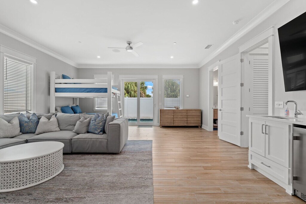 The advertised rate of $26,694/month is the lowest available price, based on a 1 month(s) stay with a move-in date of April 26, 2026. Rates vary depending on the duration of stay, season, and other parameters. For exact pricing and additional pricing components, please visit our website and enter your desired move-in and move-out dates. The rate is applicable when billed upfront; it can be higher if billed in multiple payments. Feel at home in Teddy’s Heaven, a luxury beachfront home set directly on the private sands of Bid-A-Wee Beach, on the quieter west end of Panama City Beach and a short drive from 30A. This coastal retreat was designed for togetherness, comfort, and meaningful time by the water. This home blends elevated beachfront living with the ease of a true vacation experience. With generous gathering spaces, direct access to a private beach, and room for large families and groups, this home offers a rare balance of space, privacy, and simplicity. It features multiple indoor and outdoor living spaces, wet bars, a second-floor scullery off the kitchen, and an industrial ice maker in the first-floor garage. A built-in Sonos speaker system is located throughout the home and outdoor areas. For families, a pack and play, high chair, baby gates, and stroller are provided. Beach chairs and a beach cart are available in the garage. A private elevator connects all levels. Pool heating is available seasonally for an additional fee. A six-seater electric golf cart is included, and a licensed driver is required. Access to a concierge is available for private chefs, transportation, grocery pre-stocking, beach set-ups, excursions, and curated local experiences. Set directly on the private shoreline of Bid-A-Wee Beach, this home offers a quieter and more exclusive beachfront experience in Panama City Beach. This private beach is reserved for nearby homeowners and guests, resulting in fewer crowds and a more relaxed atmosphere throughout the day. A short drive brings you to Pier Park for shopping, dining, and entertainment, as well as Topgolf. Beachfront dining favorites like Runaway Island and Sharky’s Beachfront Restaurant are also nearby. With the beach right at your doorstep, many destinations are walkable or just a quick ride away. The neighborhood is lively and vibrant, offering a perfect mix of beach-town energy and coastal relaxation. Guests have easy access to a wide variety of restaurants, cafes, ice cream shops, and casual bars, as well as family-friendly attractions and water sports rentals. Quiet hours are between 10:00 PM and 7:00 AM. No pets are permitted. The primary reservation holder must be at least 21 and remain on site. Do not interfere with exterior safety devices, Wi-Fi equipment, pool systems, or the pool alarm. Small events or gatherings may be considered with prior approval. [SI]