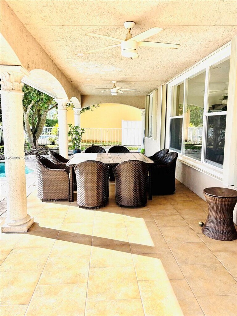 This is a STUNNING corner lake & pool home! Beautiful pool area all pavered, raised spa, and lake views from 2 sides of lot. Huge extended roofed patio perfect for entertaining. Soaring ceilings, neutral colors, large tiles flow thru-out main level, leading to huge open kitchen. Kitchen has real wood cabinets, large center island, & custom granite counters. Large Bed and bath downstairs. Master and 2 other bedrooms upstairs. Bamboo floors upstairs, master features large custom made walk-in closet and tranquil master bath, with double sinks, separate shower and roman tub recently remodeled. Accordion shutters, spacious laundry room and cabinets in the garage. All appliances less than 3 years old and newer A/C. Rental payment INCLUDES POOL AND LAWN MLS # A11957269