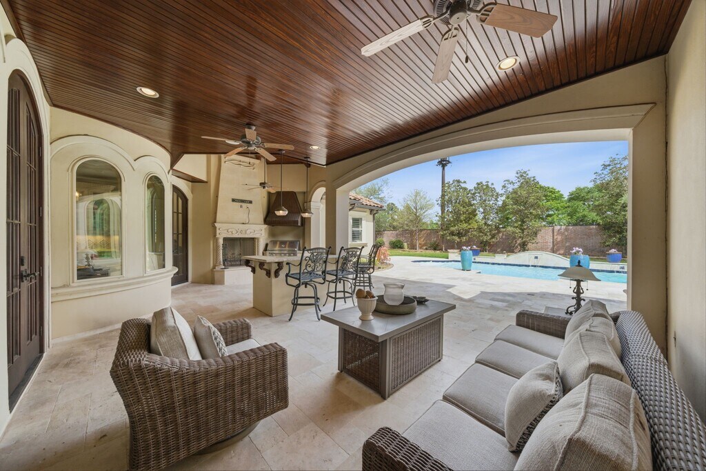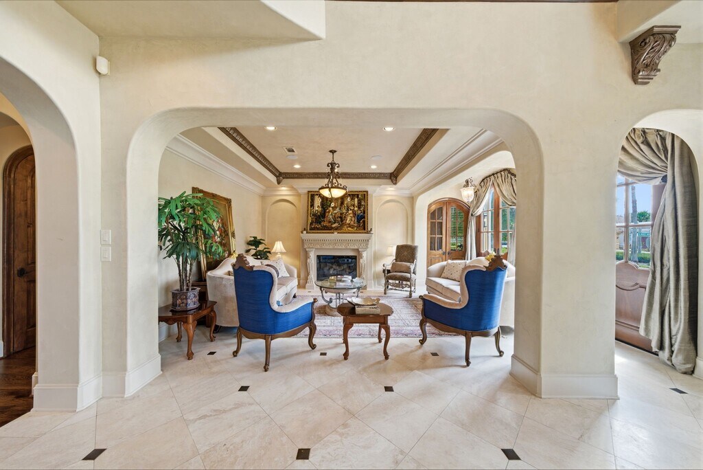 The ultimate in elegance with lake views,privacy & space to breath. A detailed expression of fine living from the arched front doors to the sprawling resort pool w/fire bowls & tanning ledge- its everything you deserve. Outdoor entertaining is easy w/the covered patio,outdoor fireplace & kitchen. Incredible foyer w/high ceilings,venetian plaster walls,gorgeous chandelier,stone floors & floating staircase. Multiple living spaces w/spacious formal living & dining rooms. Secluded home study w/stunning paneling & built-ins. Den has wood beams,pool views & cozy fireplace. Kitchen w/48" Wolfe gas range,sub zero fridge,wine fridge,warming drawer,& custom cabinetry w/extensive upgraded trim. First floor primary suite & additional bedroom w/private bath down. Upstairs find additional living room w/pool table,theatre room,wet bar & wine room. Balconies in front & back of house. Two additional bedrooms w/en-suite baths & an enormous flex room/game room (32x21) over the garage. MLS# 49354330