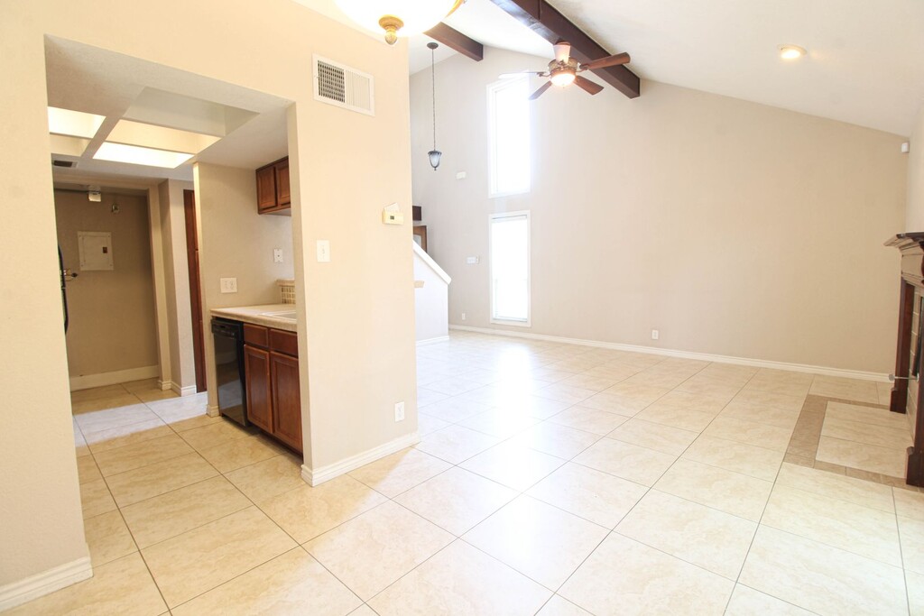 Welcome to this charming 2-bedroom, 2-bathroom home located in the vibrant city of San Antonio, TX. This property features an open floor plan that seamlessly connects the living spaces, creating an inviting atmosphere perfect for entertaining or simply relaxing. The home features a cozy fireplace, adding a touch of warmth and elegance to the living area. The kitchen is equipped with a refrigerator and ample storage space, making meal preparation a breeze. The home also offers two patios, one upstairs and one downstairs, providing additional outdoor living spaces where you can enjoy the Texas weather. This home is a perfect blend of comfort and convenience, waiting for you to make it your own.