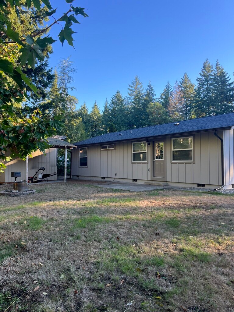 Now available for rent! This well-maintained and freshly painted and renovated 3-bedroom, 1-bath home is located in a desirable Gig Harbor neighborhood, offering comfort, space, and convenience. Enjoy a large, fully fenced yard—perfect for outdoor activities and relaxing in privacy. The home features a bright living area, spacious kitchen, and three comfortable bedrooms. An expansive attached 1-car garage provides extra storage or parking space. Conveniently located near shopping, schools, parks, and freeway access to Highway 16 to Tacoma, Bremerton shipyard, Bangor, and ferries to Seattle.