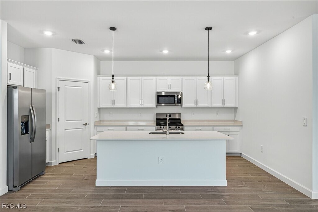 Be the first to live in this stunning new construction home located in the highly desirable gated community of Timber Creek! This spacious 4-bedroom,3-bath residence features an open-concept floor plan with a modern kitchen complete with stainless steel appliances,quartz countertops,a large island,and a walk-in pantry. Elegant wood-look tile flooring runs throughout,complemented by custom accent walls and designer light fixtures for added style. The owner’s suite offers a generous walk-in closet and a private en-suite bath with a large walk-in shower. The guest suite includes its own full bath,while two additional bedrooms share a third bathroom—perfect for families or guests. Enjoy the best of Florida living with a screened lanai overlooking a spacious yard and beautiful sunset views. The home is built for peace of mind with a tile roof and impact glass windows. Internet,lawn care,and irrigation are included in the rent for effortless,low-maintenance living. Residents of Timber Creek enjoy resort-style amenities,including a 10,000 sq. ft. clubhouse featuring a restaurant and bar,indoor basketball court,fitness center,sauna,and arcade. Outdoor amenities include multiple pools,playground,sand volleyball,basketball,tennis,and pickleball courts—offering endless opportunities for recreation and relaxation. Conveniently located off Daniels Parkway and State Road 82,Timber Creek provides easy access to RSW Airport,JetBlue Park,shopping,dining,and entertainment. Don’t miss your opportunity to experience luxury,convenience,and resort-style living in this exceptional Fort Myers community!