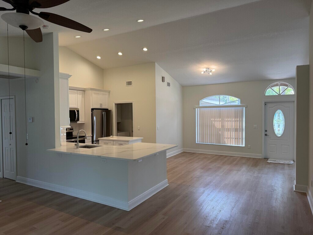 Great quiet location over 1 acre of land,3/2,2 car garage,renovated brand new appliances,new cabinets,quartz countertops,new bathrooms,outside wood fire pizza oven,fire pit for those family moments. Whole house RO (reverse Osmosis Filtration System) Owner pays for grass maintenance and Water System as well. Great schools,grocery near by. Ask for first month,last month and security deposit. MLS ID B26013452