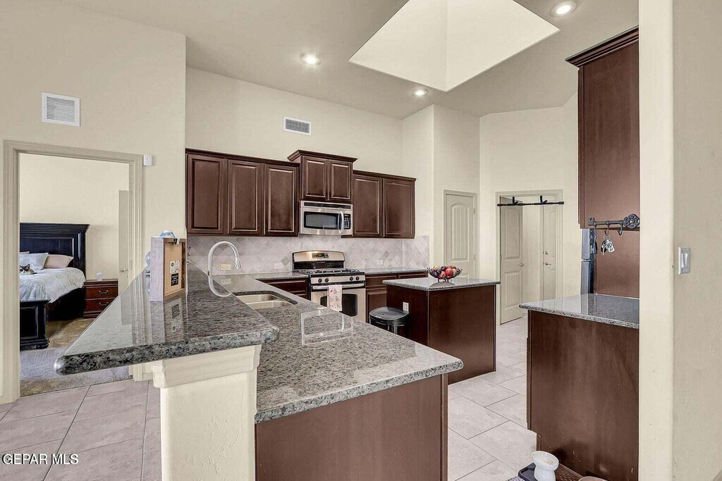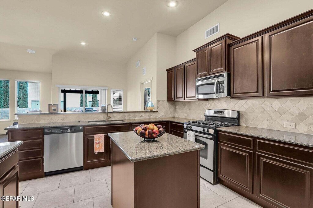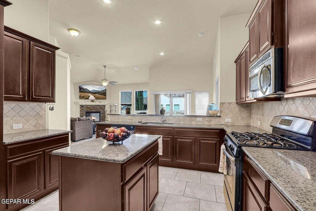Beautiful 4 bedroom home with 2 bathrooms in Far-East El Paso. Spacious kitchen with granite countertops,stainless steel appliances,breakfast bar,pantry,and large skylight above the island! Enjoy family nights in front of the stone veneered gas fireplace and surround sound system for movie nights. Ample natural light from the large windows. Landscaped front,and backyard is ready for entertainment. Close to shopping,schools,and Ft. Bliss. Pet friendly (limit 2),breed restrictions apply. **Listing may be subject to errors,omissions or changes without notice. All information has been supplied to Broker by another party and Broker has no reason to believe it to be false. Broker makes no expressed or implied warranties regarding property condition. Property is 'as-is'. All are instructed to verify all information independently prior to taking any action.**