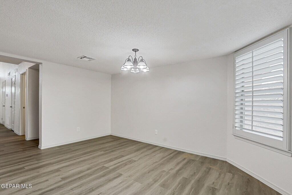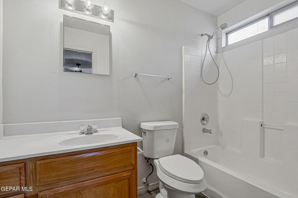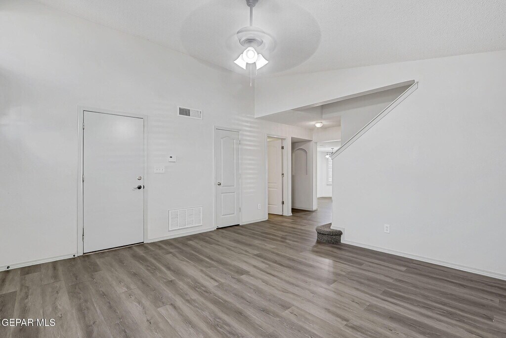 This 2 story property features 3 bedrooms. Primary bedroom located on the main floor with a huge walk in closet and primary bathroom. along with 2 bedrooms upstairs with a large loft (second living area). Family room,Kitchen,Dining area,and half bath completes the main floor. The property was just remodeled Nov 2025 included was all indoor paint,flooring-laminate hardwood flooring on main floor and carpet stairs and second level. All appliances are included and were recently purchased including refrigerator,gas stove,dishwasher,washer and dryer. REFRIGERATED AIR ! Wooden Shutters throughout most of the windows. Double car garage with laundry room. Backyard with a patio and trees/shrubs align the back walls. Within walking distance to school and parks. Within minutes to shopping centers,restaurants. loop 375 and Fort Bliss.