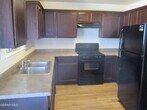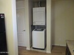 Two-bedroom,two-bath kitchen/dining combination. Kitchen equipped with stove,dishwasher,refrigerator,pantry,and stackable washer/dryer. Bedrooms and living room areas are carpeted. The unit has refrigerated air,a storage room,and is located on the first floor with a backyard.