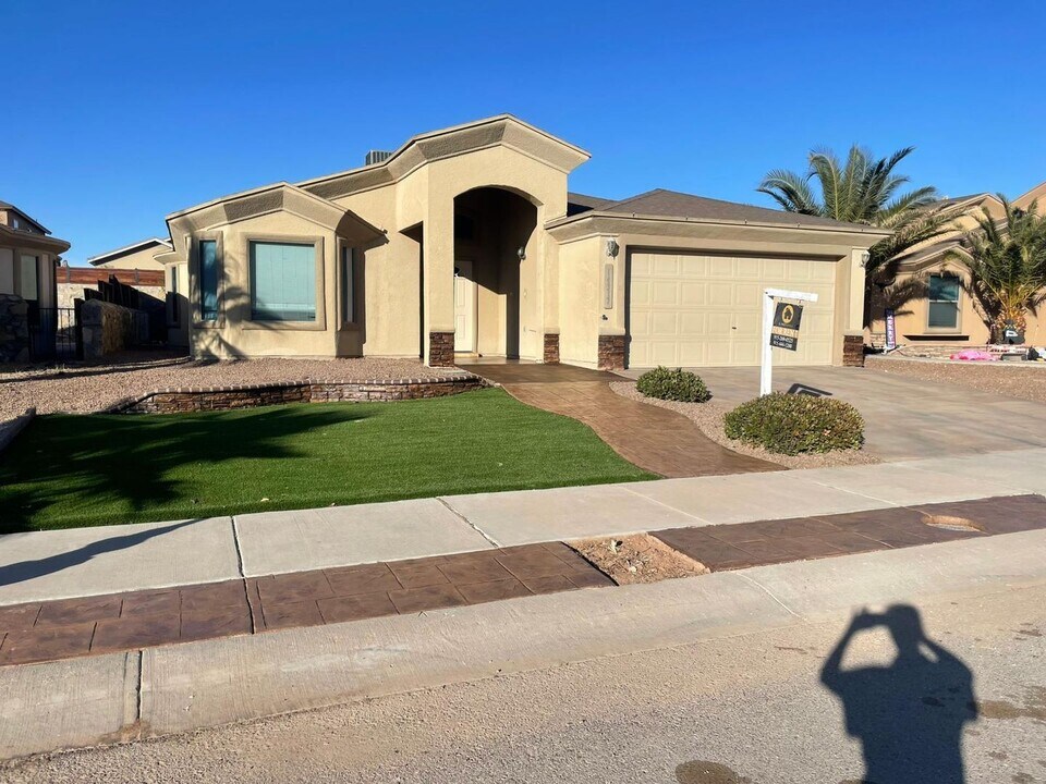 Welcome to the Amazing 3 bedroom 2 bath home located in the beautiful Tierra Del Este neighborhood! This charming home features a range of amenities to make your living experience exceptional. Stay cool in the hot Texas sun with refrigerated A/C while enjoying the convenience of a double car garage and washer/dryer hookups. Take in the lovely landscaped front and back yard from the comfort of your covered patio or unwind in the garden tub located in the master bathroom. The kitchen boasts stainless steel appliances, granite countertops, a kitchen island, and a breakfast area. Ceiling fans throughout the home will keep you comfortable all year round. Additionally, the master bedroom features a spacious walk-in closet for ample storage. Come settle down in this beautiful home and make it yours today! Call for Leasing Information. All El Paso Rentals residents are enrolled in the Resident Benefits Package (RBP) for $45.95/month which includes renters insurance, credit building to help boost your credit score with timely rent payments, $1M Identity Protection, HVAC air filter delivery (for applicable properties), move-in concierge service, making utility connection and home service setup a breeze during your move-in, our best-in-class resident rewards program, and much more! More details upon application.