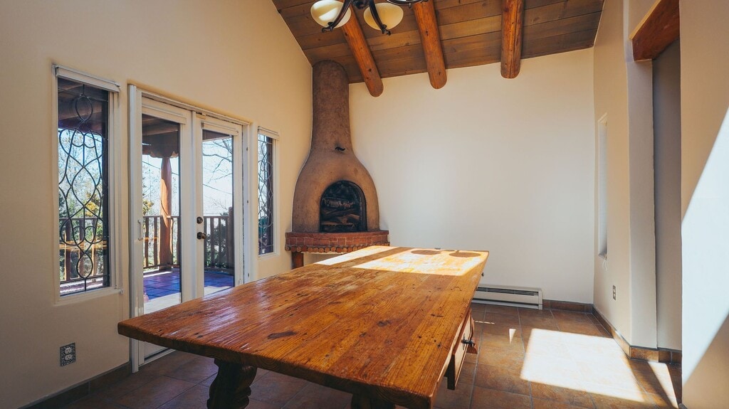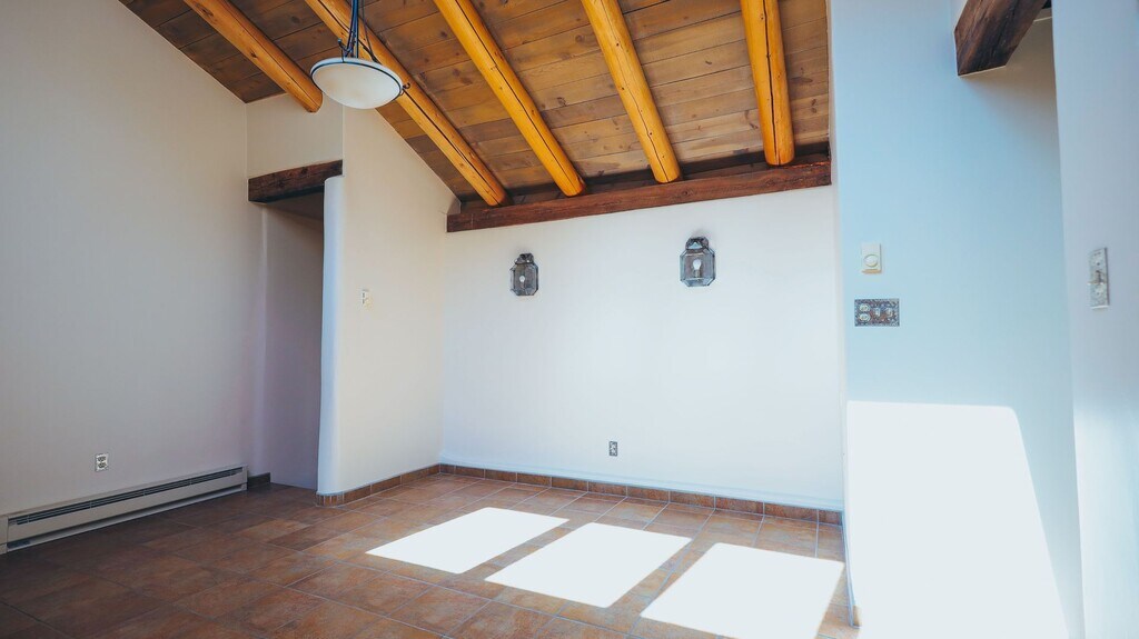 No virtual tours. Property must be viewed in person prior to applying. Any application received prior to viewing the property will not be considered or processed. A $75 application fee and a minimum credit score of 620 is required. Please email Fiorina Properties to schedule a showing and include your phone number and email address. Stunning, two-story, Pueblo-style home nestled in the highly desirable, Historic Eastside of Santa Fe at the top of Canyon Road. This timeless home features three spacious bedrooms, a tranquil den with a cozy fireplace, and 2.5 bathrooms. The full kitchen offers plenty of room for cooking and entertaining. Also includes a charming living room fireplace, baseboard heat and A/C, mini-split units for additional cooling and heating, and warm tile floors throughout. Enjoy the outdoors with the beautiful brick patio and open frame porch, perfect for relaxation. The attached three-car garage and spacious driveway offer hassle free parking. Just minutes from Cerro Gordo Park, Dale Ball Trails, The Teahouse, Monsignor Patrick Smith Park, and galleries. Only about 2.2 miles from the vibrant, downtown plaza. Utilities are not included. The deposit is equal to one month's rent. Dogs or cats are considered with a $250 non-refundable pet fee per pet. Smoking of any kind is not allowed. 12 month lease term preferred. Brokerage: Fiorina Properties LLC Qualifying Broker: Riesha Fiorina