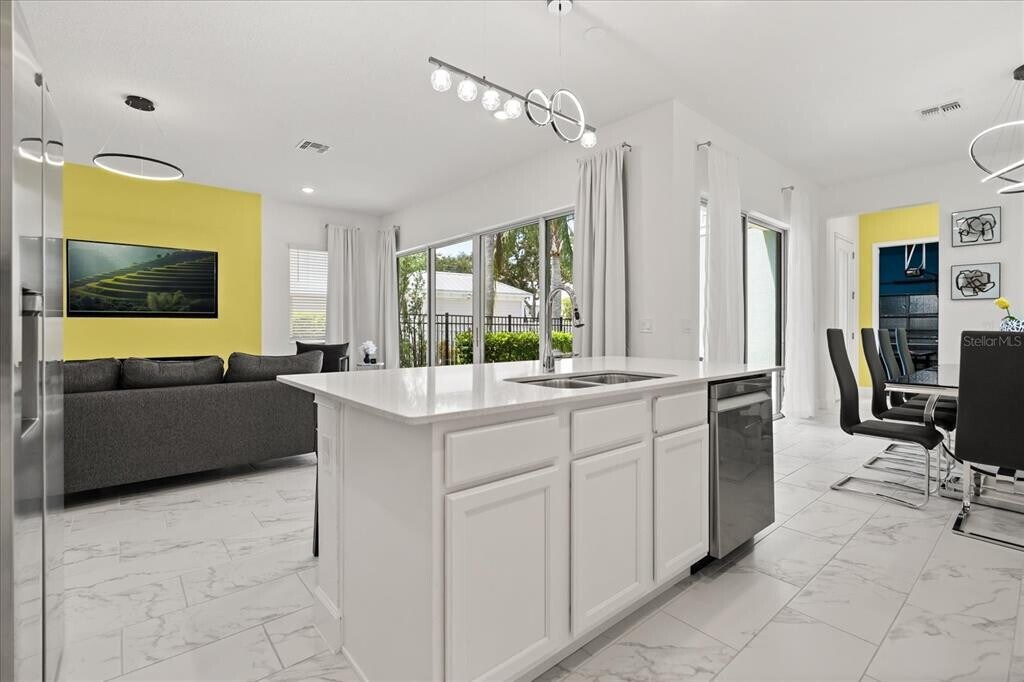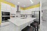 Stunning Key West Style Home that Blends Modern Luxury with Resort-Style Living! This like NEW 2022 build was designed with exceptional attention to detail. Featuring a fantastic open-concept floor plan,this home is loaded with high-end fixtures and energy-efficient LED lighting throughout. Step into the spacious living area,complete with a decorative electric fireplace and a built-in workspace as an added bonus,perfect for working remotely. The gourmet island kitchen is a chef’s dream,boasting ample cabinet space,quartz countertops,stainless steel appliances,and an additional wet bar sink. The dining area is adjacent to the kitchen and comfortably seats up to 10 guests,making it ideal for family gatherings or dinner parties. The first floor also includes an en suite bedroom with walk-in shower. Additionally there is a half bath adjacent to the dining area that also allows access to the pool area for guests. The garage has been transformed into a fun game room featuring a Pop-A-Shot basketball and other fun games,but can easily be converted back to a traditional garage if desired. Upstairs,you enter double doors to the luxurious primary suite,highlighted by tray ceilings and a spa-inspired bathroom with dual vanities and an expansive dual walk-in shower. The three remaining guest rooms are professionally decorated with theming also feature en-suite bathrooms. A versatile loft space has been converted into a cozy theater room,complete with a projector large screen and elevated seating perfect for movie nights. The laundry room is conveniently located on the second floor and has built-in cabinets as well. Start your mornings off right on the upstairs balcony,overlooking the incredible pool area below. The outdoor living space offers two covered lanais,perfect for summer BBQs and year-round entertaining. Reunion Resort is a 2,300 acre Private Golf and Tennis Community,just 6 miles to Disney and the parks,and a 30 min drive to the Orlando International Airport. Enjoy the Reunion Grande where there are several delicious dining experiences that include a Sushi Bar,The 7593 Chophouse both located on the Lobby Level. Eleven is a rooftop restaurant & bar to enjoy your favorite cocktail,tapas style cuisine or relax by the fireplace and pool. Located adjacent to the hotel,enjoy the Golf Clubhouse,the Seven Eagles Pool Pavilion & fitness center. MLS# O6353045