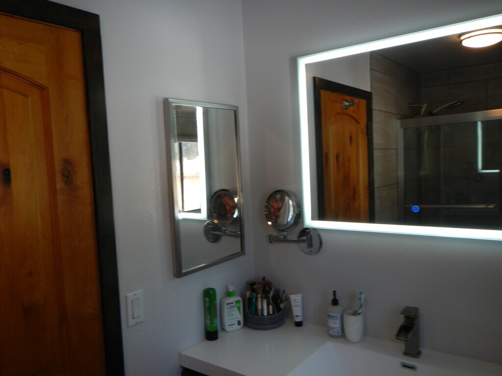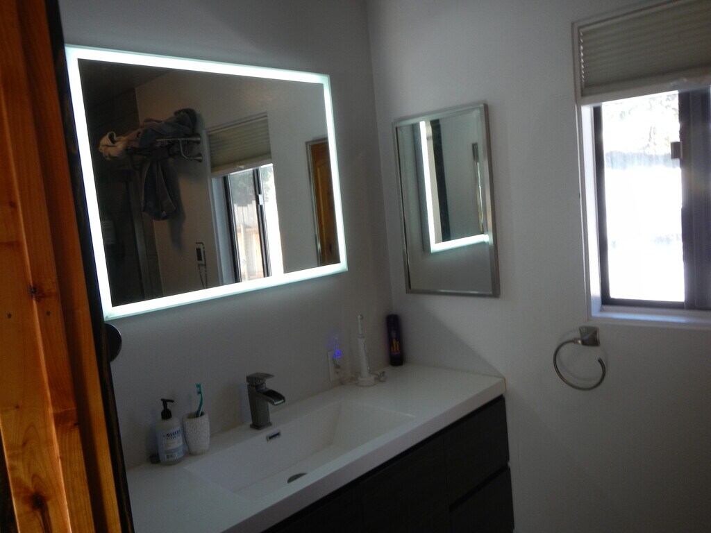 Freshly painted home newly remodeled kitchen and bathrooms. new flooring throughout. Living area has air conditioning. Two car garage included. House can be rented furnished or not. Walking distance to market, restaurants, bars and public lake access with boat launch. Large parking area for toys. Fenced and gated on one acre with multiple fruit trees. Pets ok. Renter responsible for electricity and water. Renter responsible for snow removal and yard maintenance. Year lease required.