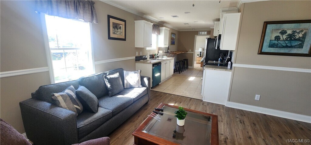 Enjoy the quaint little town of Ozello where fishing and boating are the talk of the town! Enjoy beautiful sunsets at the bridge with the locals and have a sandwich or cocktail at one of the local establishments. This 1 bedroom,1 bath stilt home sits on a canal that goes to the gulf. Laminate flooring in living room and bedroom with ceramic tile in the kitchen. Living room has a pull out sleeper sofa and wall mounted television. Kitchen offers built in microwave,glass top stove,double sink,dishwasher,side by side fridge and bar top. Inside laundry room with washer and dryer. Bedroom offers Queen size bed. Bathroom has tub/shower combination. Dead end street. Nice oversize lot. Rents 6 month minimum.